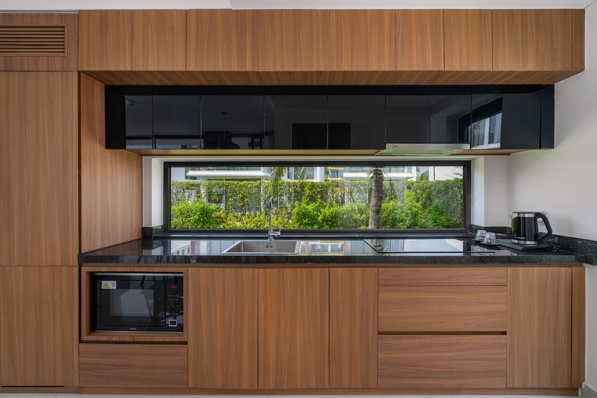 ダナンにある平和な庭園の隠れ家へようこそ!当宿泊施設は、3ベッドルームの広々としたヴィラで、高級オーシャン・ヴィラ・リゾート内にあります。会安古都とダナンの繁華街の間に位置する絶好のロケーションで、ベトナム中部の見どころを探索するのに理想的な拠点です。 広大で緑豊かな庭に囲まれたこのヴィラは、静かでリラックスした雰囲気を提供し、快適な隠れ家を探している家族連れやカップル、お友達に最適です。