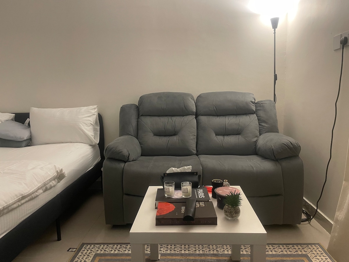 マスターベッドルームとサイドロビーで構成される独特のアパートのデザインをお楽しみください。お客様のご期待に応えるために、細心の注意と愛情を込めて設計されています。5Gのインターネットを提供していますので、65インチのテレビでお気に入りの映画を楽しむことができます。空港から10分、アル・オサイム・モールから4分の場所にあります。また、徒歩5分の西コーニッシュガーデンで楽しい時間を過ごすこともできます。