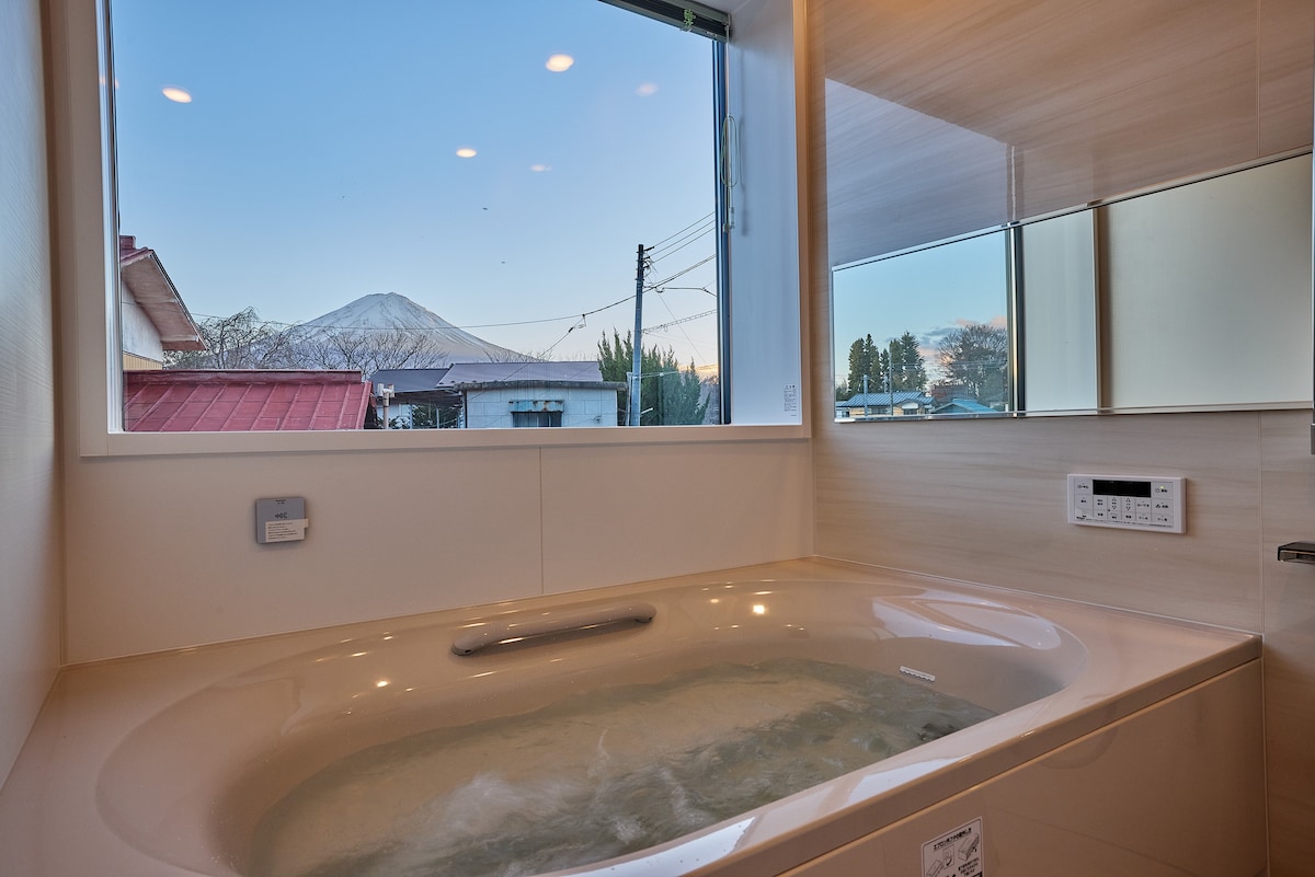 絶景富士山ビュー&富士山が見えるジャグジー・室内サウナ・85インチTVを堪能できる屋上付き貸別荘!