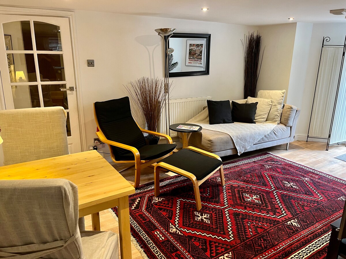 コンパクトで歴史的なマーケットタウンAltrinchamにある快適で設備の整った1ベッドルームの地下室フラット。 無料のオフロード駐車場。 清掃料金はかかりません。ウェルカム食品・雑貨パックは無料です。 マンチェスター、サルフォード、メディアシティ、オールドトラフォード、ナッツフォード、チェシャーなどへのビジネス、家族、レジャーの訪問に理想的なプライベートベース。マンチェスター空港から5マイル。 そのために車は必要ない。 素晴らしい地元のアメニティ、ファブレストラン、ショップ、市場、公共交通機関-それらはすべて徒歩圏内です。 お楽しみください:)