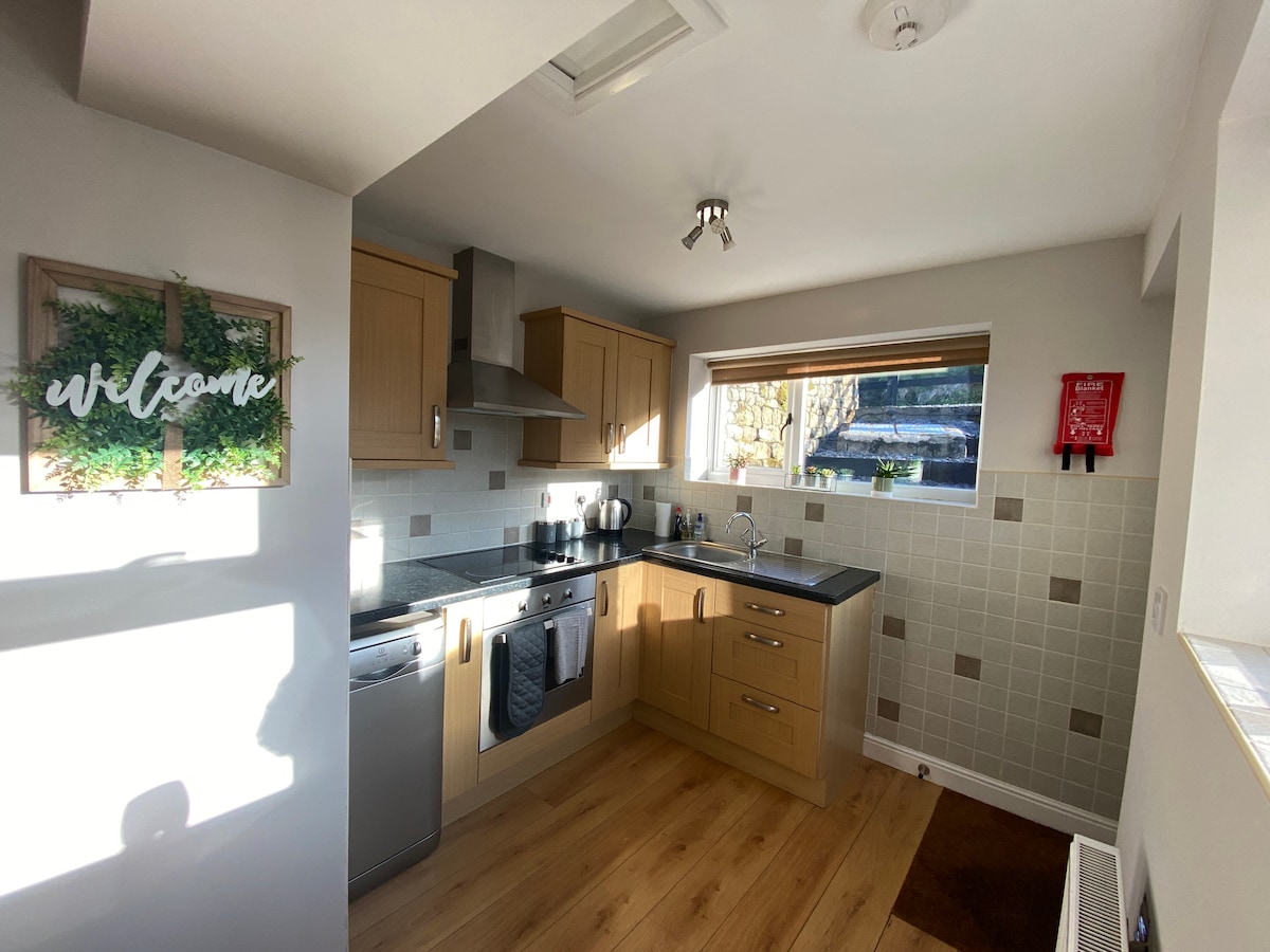 ハワースのこの美しいコテージでスタイリッシュにリラックスしましょう。ブロンテの家と有名な石畳のメインストリートまで徒歩2分。 梁、暖炉、窓際の座席、ヨークシャーの石造りなど、オリジナルの特徴が魅力と個性を満載。モダンな利便性と快適なコテージのユニークさのバランスが取れています。贅沢な休暇を過ごせる場所です。おしゃれなバスルーム、キングサイズのベッド、1000TCの寝具、革製のソファ、バースツールとテーブル、薪ストーブ、高品質のキッチン、ベルファストシンクが備わっています。愛と気遣いを込めて改装されました