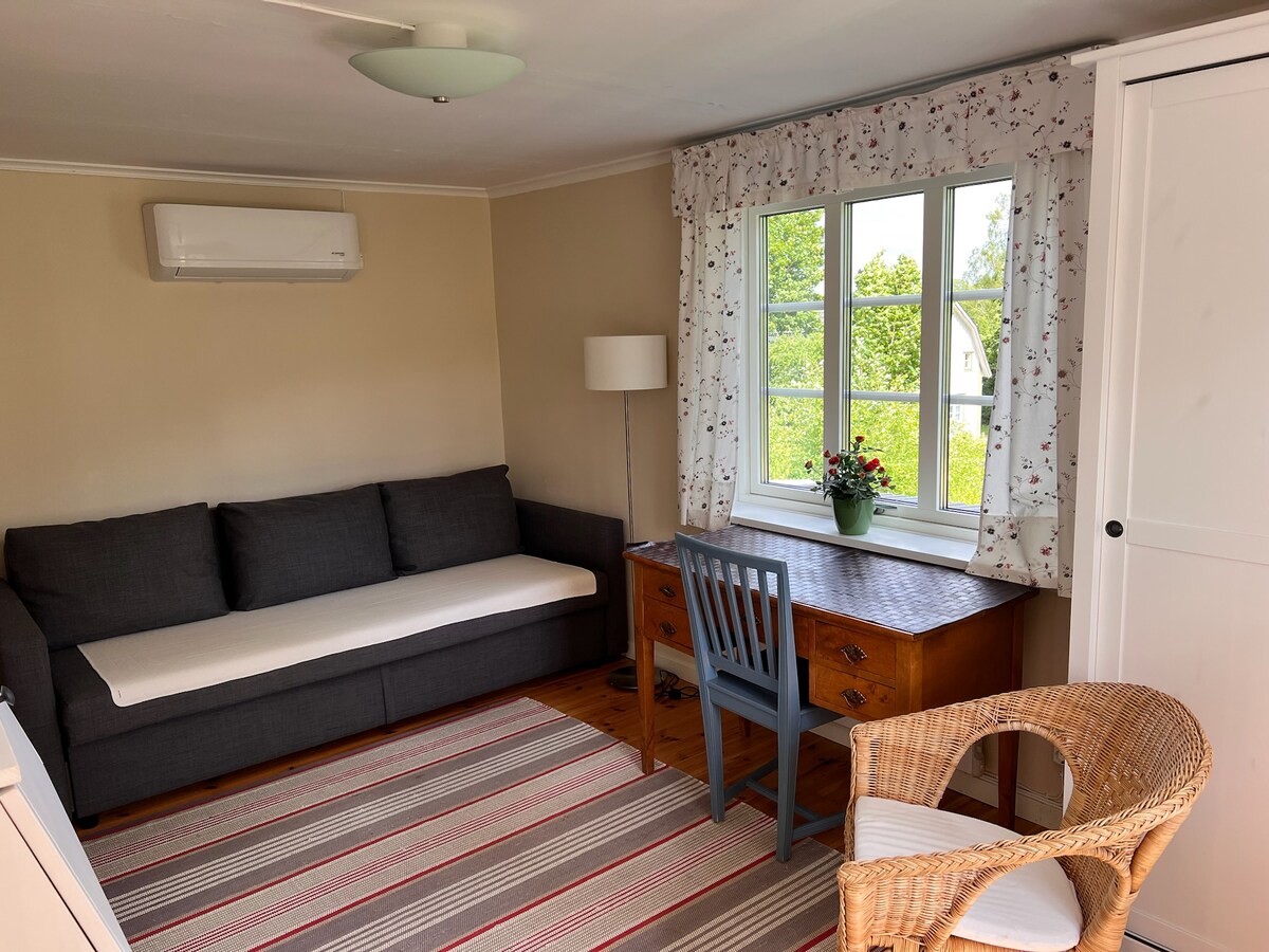 古い納屋に改装されたばかりの1部屋のゲストスイートで、独立した入り口があります。 この宿泊施設には、200年前に建てられた5棟の建物があります! ゲストスイートは新しく改装され、快適な滞在に必要なアメニティ・設備がすべて備わっています。 この宿泊施設は、9ヘクタールの森林に囲まれた場所にあります。 人里離れた場所にありますが、E4までわずか10分です。 ホストはスウェーデン人とアメリカ人のカップルで、敷地内にいます。 ペット同伴OK!素朴で豪華!
