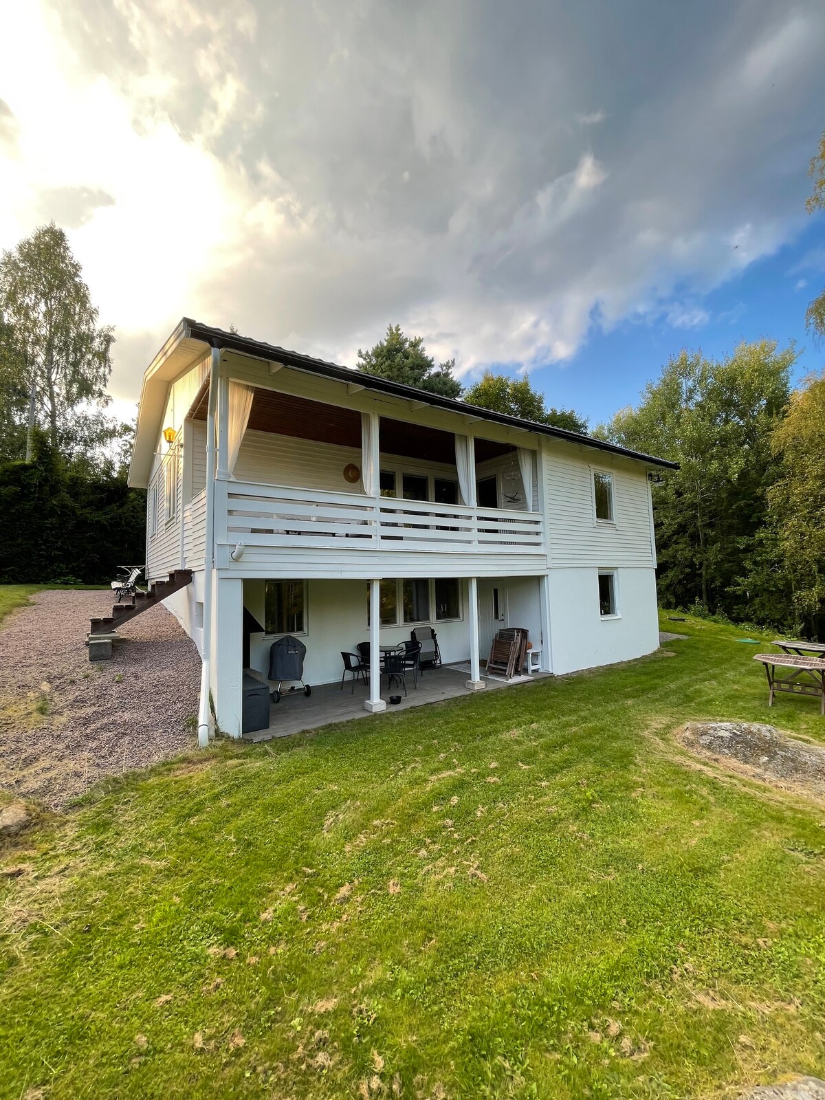 Att få bli ett med naturen i en magisk omgivning är något speciellt. Här kan ni slappna av och bara njuta! Till byggnaden hör även en terrass med bord & stolar. Byggnad uppfördes 2023 där byggmaterial är närproducerat, möbler & elektronik är återbrukade för att få ett så litet klimatavtryck som möjligt. Jag och min fru driver även boendet " The View" på samma adress och hoppas att våra gäster kommer bli minst lika nöjda med "The Lake house". Läs gärna recensioner på "The View"