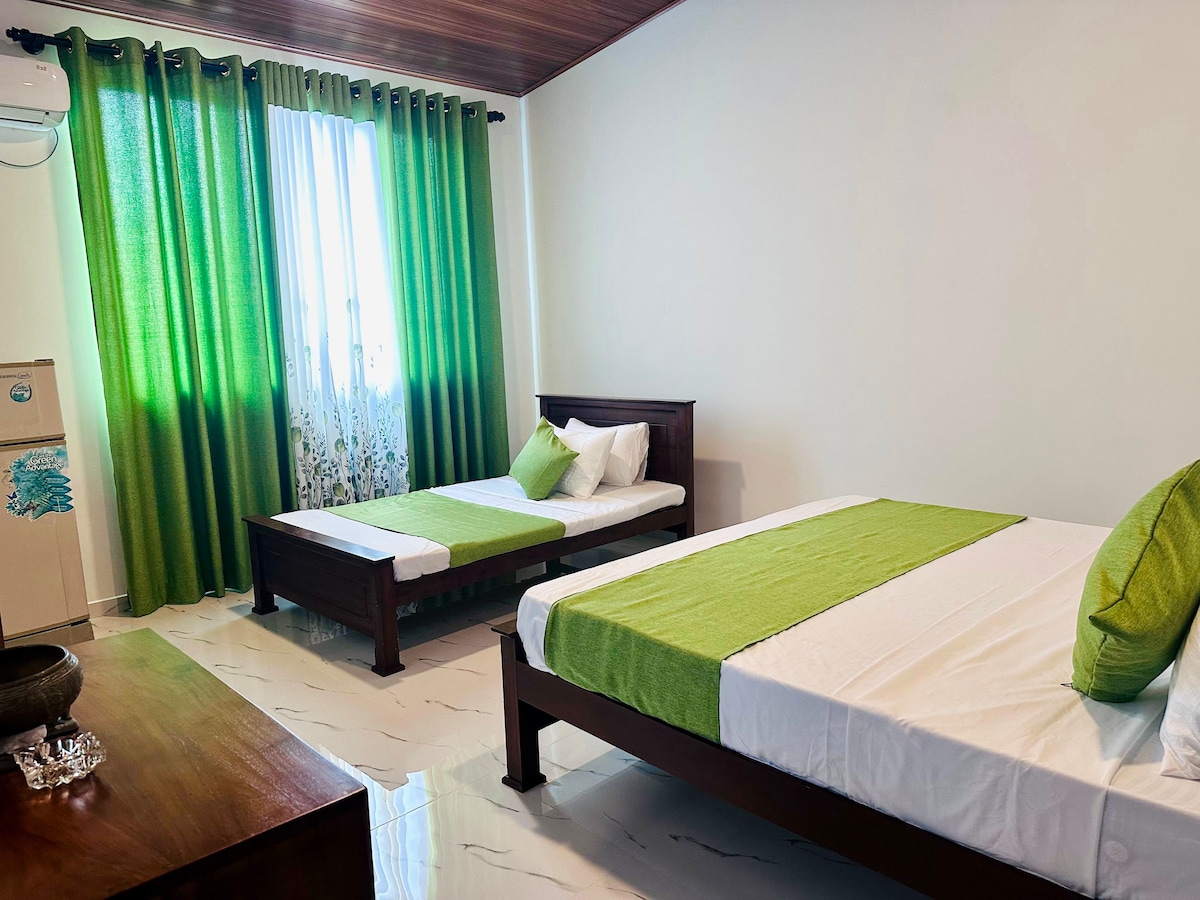 We are offering UNLIMITED 4G WIFI FREE OF CHARGE and we assure for online workers to provide you an uninterrupted electricity and wifi by using a power generator. Guests have a private balcony. The Home stay features a Kitchen with a dining area, An attached bathroom with Hot Water. Guests can relax at the garden. Only 1 and half kilometers to Hiriketiya Beach (Surfing Island). You have the ability to taste the authentic Sri Lankan cousins with experiencing the great hospitality.