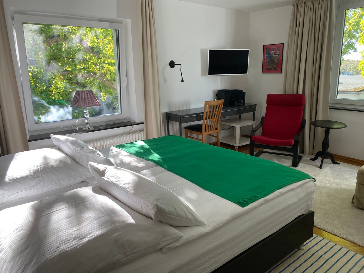 ようこそ ルーベックで最も美しい菩提樹の並ぶ通りの一つで、旧市街の島とヴァケニッツから徒歩ですぐの場所にあります。 学生パブ、トレンディなカフェ、シックなレストランがある活気ある大学の街をお楽しみください。 すべて徒歩圏内にあり、無料駐車場/家の前のバス停があります。 すぐそこのワケニッツ湖で泳ぐか、近くのオストシー海岸に行くのも良いでしょう... ハイライトは、旧市街とヴァケニッツの塔の眺めを楽しめる30平方メートルの屋上テラスです。