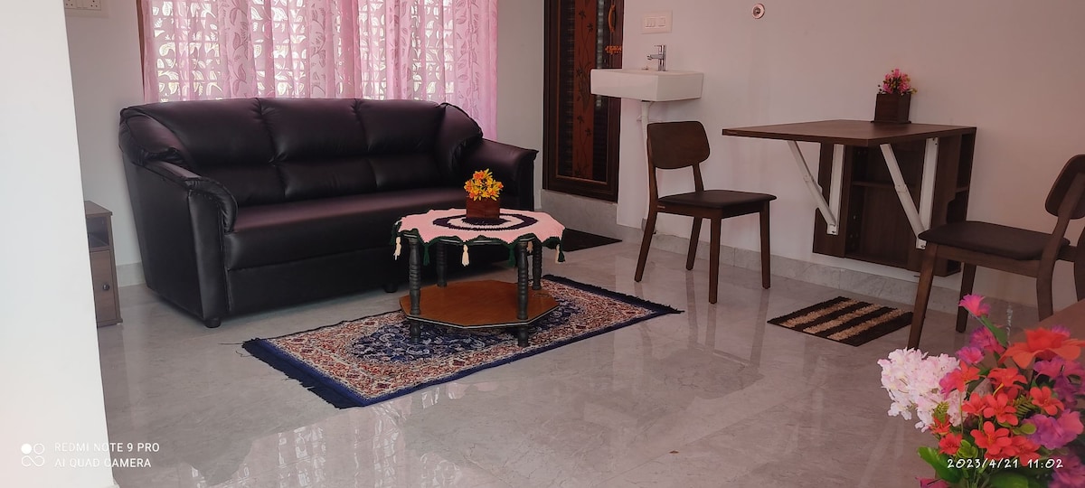 私たちのアパートは風通しが良く、美しく、広々としています。 広々としたリビングダイニングルーム、ベッドルーム2室、バスルーム2室、設備の整ったキッチン、チャムンディ丘に面した街のスカイラインを望むバルコニーをお楽しみいただけます。 テラスでは、ヨガを練習したり、お茶を飲んだりして、最も美しい夕日を眺める準備をしたりできます。 リモートワーカー、長期滞在のゲスト、ご家族、法人旅行者の方に対応できるよう、快適な滞在に必要なアメニティ・設備がすべてそろっています。