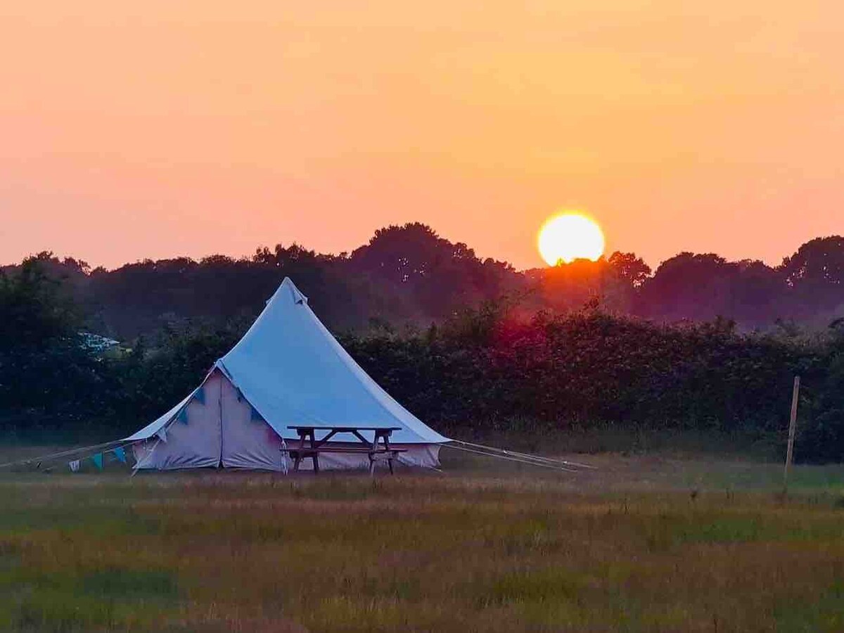 ニュー・フォレストでベルテントのグランピング。
