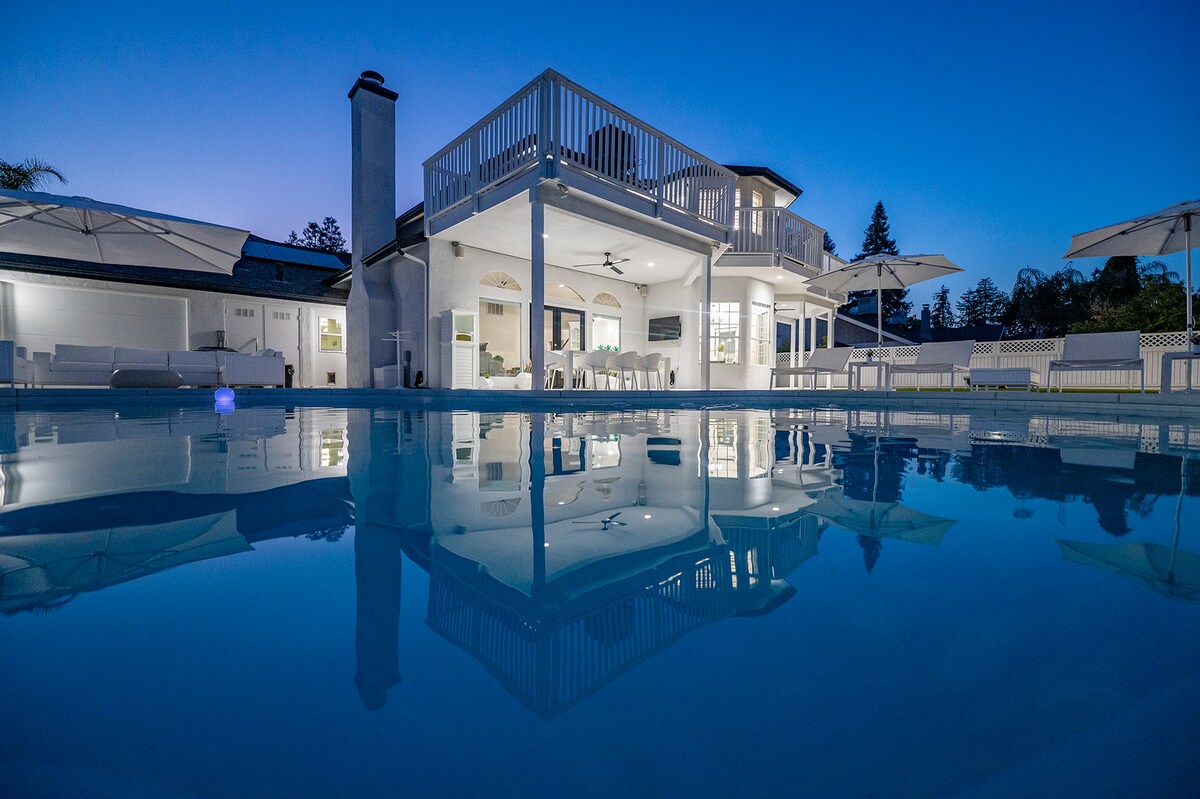 温水プール&スパ付きの貸切住宅(セコイアまでEV充電可)