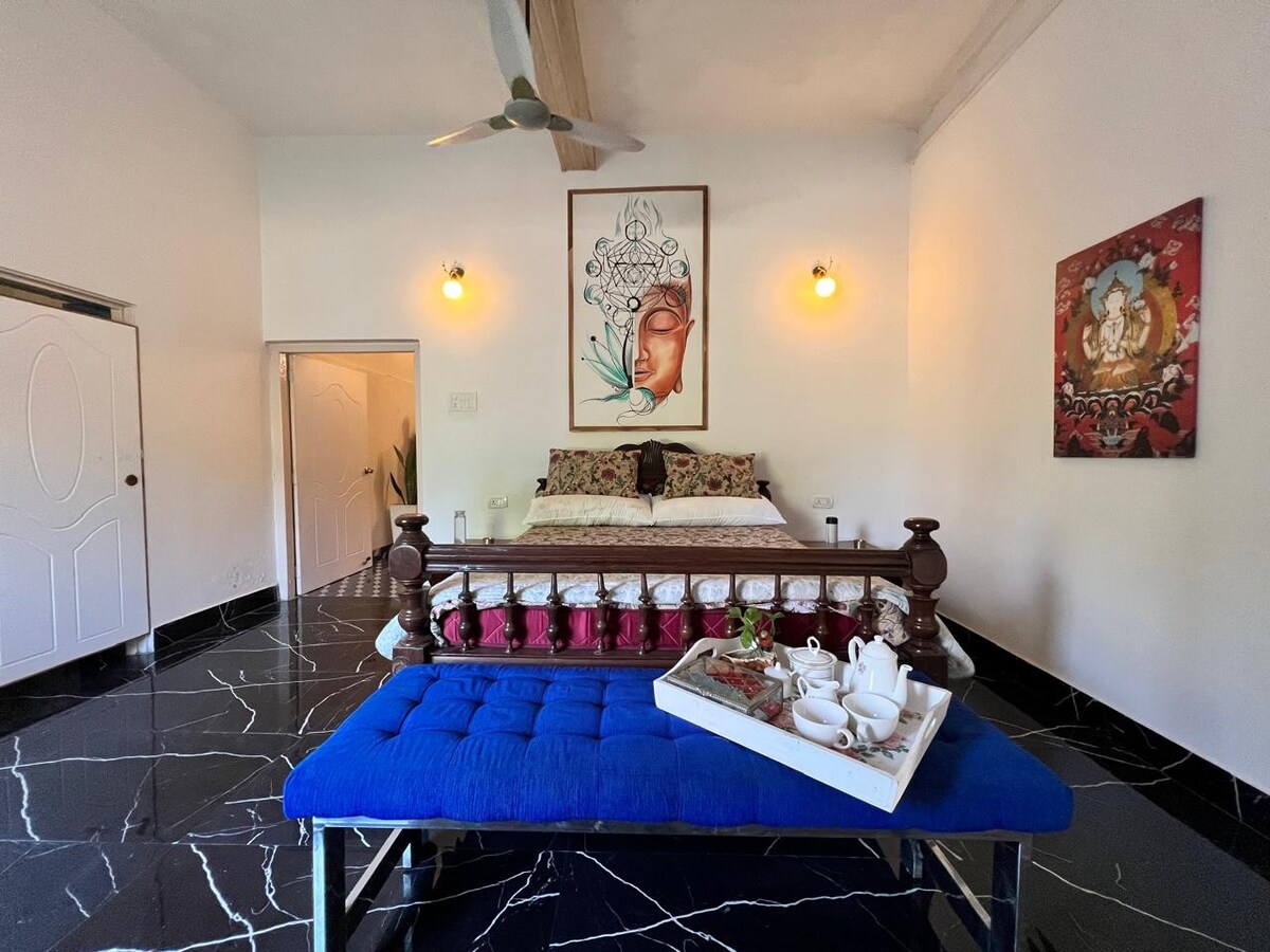 客室とコテージで構成される美しいオープンスペースの物件です。 周囲には緑の森、滝、秘密の瞑想の洞窟があり、360度の山の景色が楽しめます。 ヨガ、柔道、ボクシング、ボディマッサージ、サウンドヒーリングなど、さまざまなアクティビティからお好きなものをお選びください。 この汚染の少ない場所で、元気を取り戻すことができます。 なお、寝室は合計3部屋です。1つ目のベッドルームは3名様用で、6名様までです。2つ目のベッドルームは2名様用で、6名様以上の場合は3つ目のベッドルームがあります。よろしくお願いします。 🙏🏼