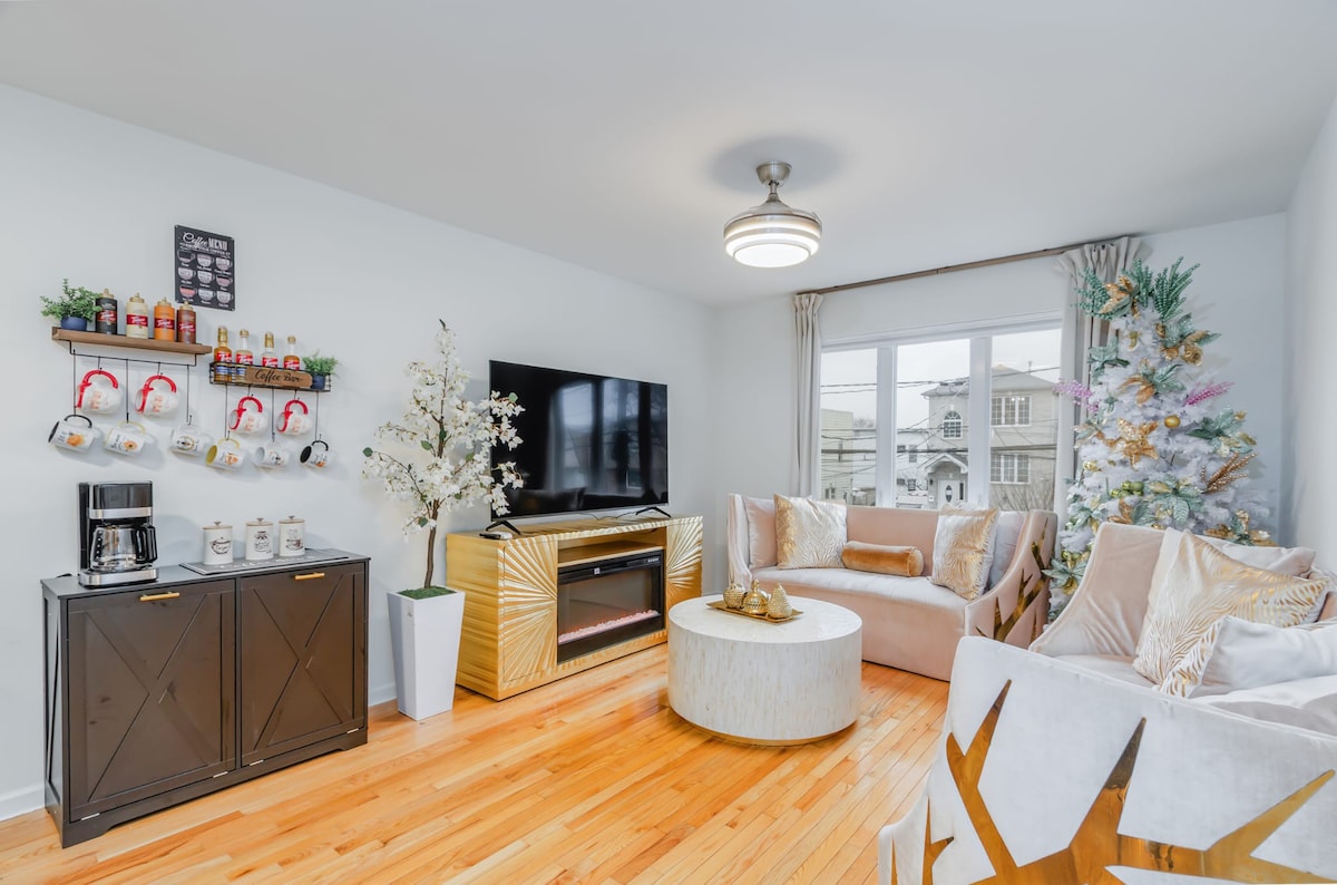 レビュー15件、5つ星中5つ星の平均評価EWRからのシックな3BRエスケープ、メットライフまで15分、ニューヨーク市まで30分