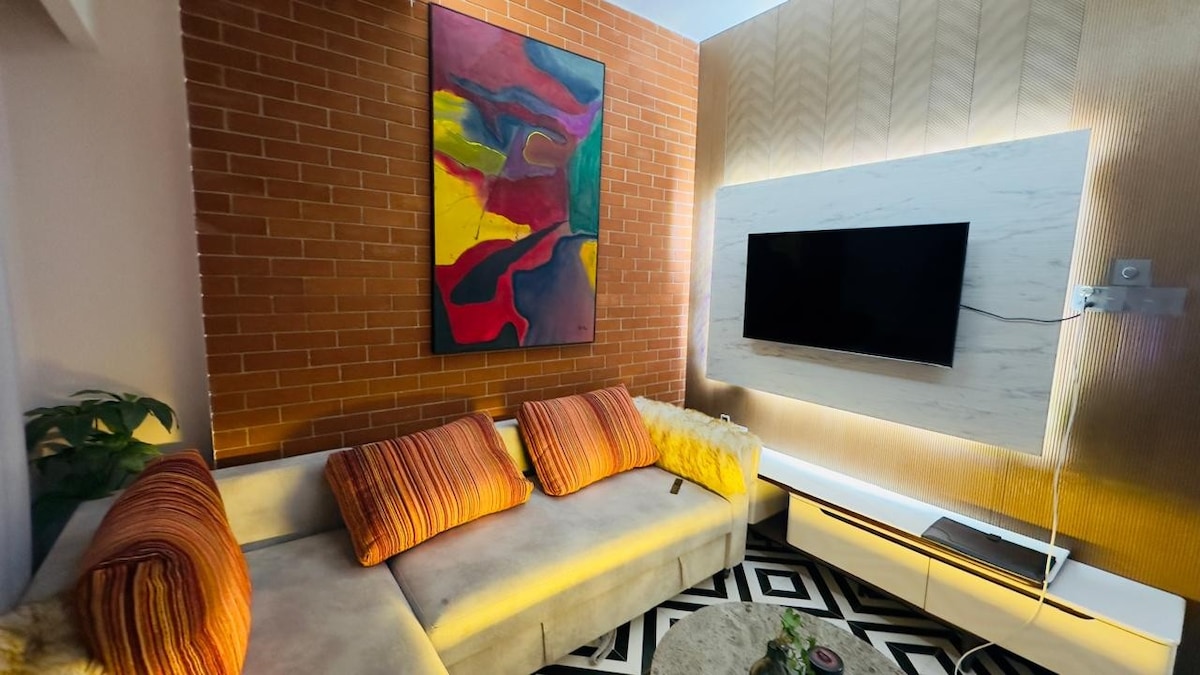 Experience a peaceful and secure stay in this bright, airy apartent. The space features two well-furnished rooms to accommodate up to 4 guests — one room includes an air conditioner. Personal Workspace for Any official Meetings. A spacious bathroom, and a compact kitchen for cooking. Complimentary tea, coffee, shampoo, and soap. 24-hour lift access and power backup, 24x7 security. Perfect for families, friends, or short business stays — your cozy home away from home
