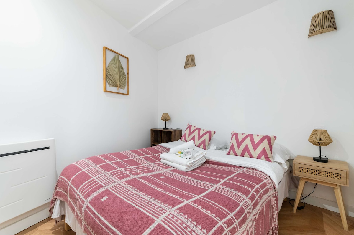 花の咲く中庭にある、キッチン、バスルーム、バス付きのお部屋で、1~2名様に最適です。すべてのアメニティに近く、パリを訪れるのに理想的です。パリの中心部に位置し、地下鉄ベルヴィル駅から2分です。 ご到着日には次のことをお約束します。 鍵のお渡しの際は、私たちが必ず立ち会います。説明、ワンルームの使い方、そしてこの地区の生活の概要をご案内します。
