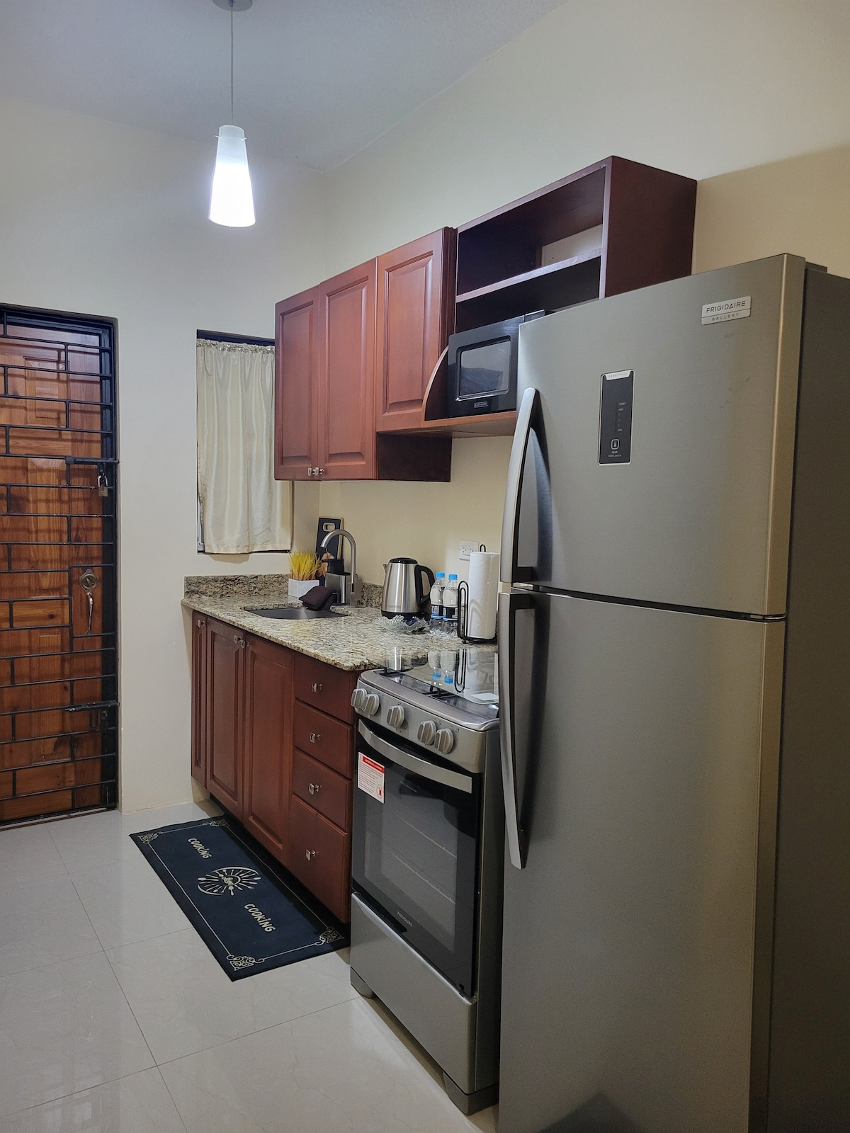 New 1 bedroom apartment with modern facilities in gated community 15 minutes from business district. There is free unlimited high speed wifi provided. Guests should know that enhanced cleaning protocol is in place since Covid-19. This location is perfect for either the business traveler who wants to work from home from or that couple wanting privacy but closeness to the action or the national returning home wanting a place to settle before making a permanent move.
