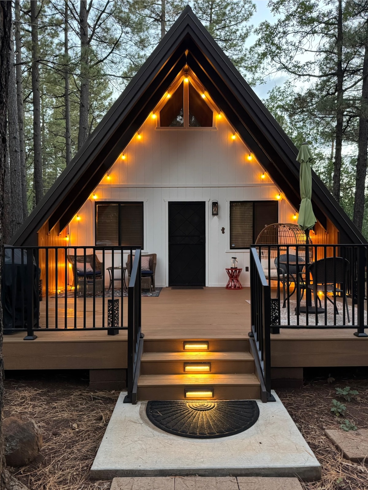 ミッドナイトパインズ - ジャグジーとエアコン付きの黒い三角屋根のログハウス
