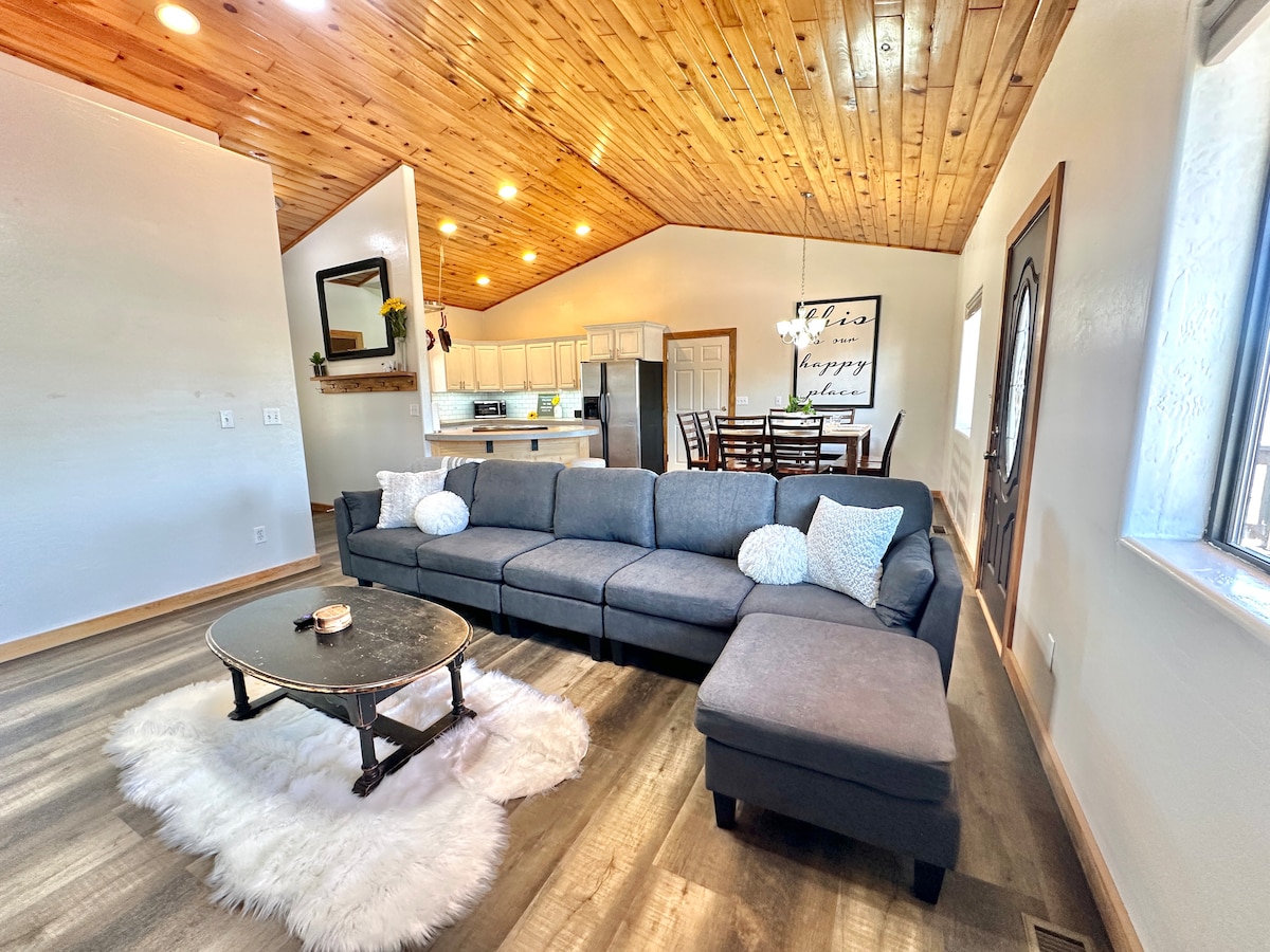 ワイルドアスペンリッジへようこそ!寝室3室、バスルーム2室、広々としたグレートルームを備えたこのキャビンは、ご家族やご友人と集まるのに最適です。ロフトには追加の寝室スペースがあり、小さなお子様のためのベビーベッドもあります。3つの大きなデッキスペースのいずれかで集まったり、リラックスしたりして過ごしてください。2階のデッキからの山の景色は素晴らしいです。このバケーションレンタルは、高速道路からアクセスが簡単で、町にも近いですが、キャビンはほぼ1エーカーの敷地内にあるため、料金を支払うことができます