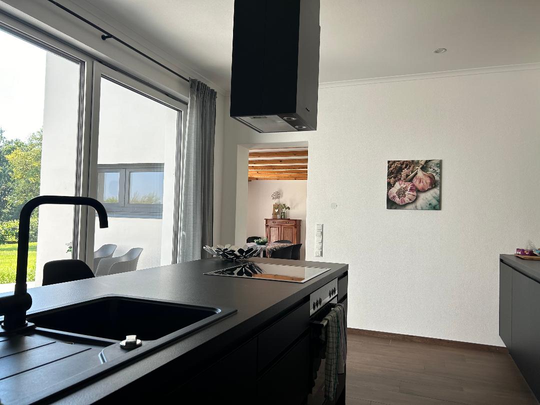 Stylish restored old barn in a stunning secluded location, offering 120 sqm of space with panoramic views of the countryside, a 50 sqm gallery with large windows, an infrared cabin, a walk-in shower, a bathtub, a luxury designer kitchen, terrazzo marble flooring with electric underfloor heating, a historic tiled stove from 1700 and a fenced garden for as many dogs as you like. A dream just 15 min. from Passau, 3 min. from the motorway, and 10 min. from the Danube. Bookable from Nov 2025