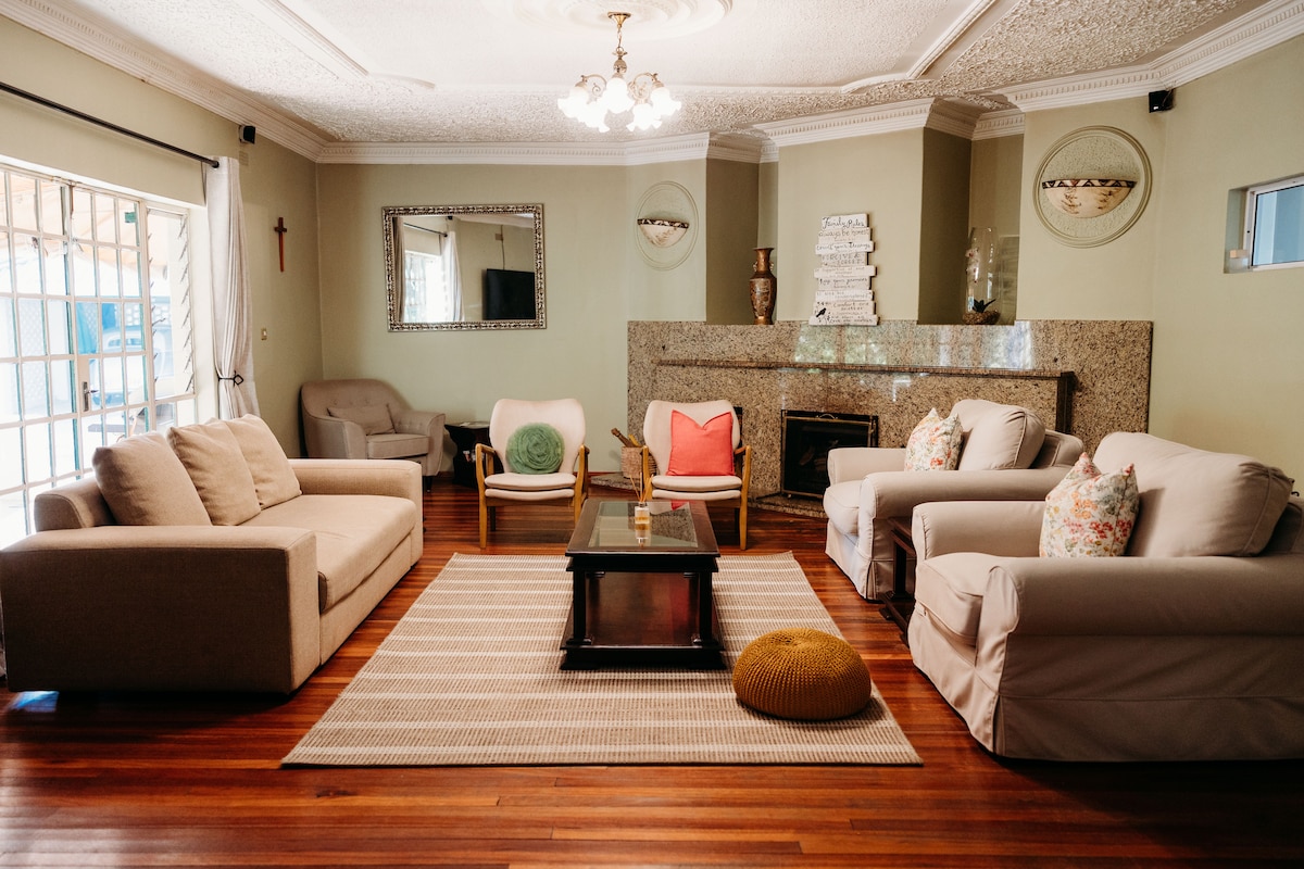 この静かな3ベッドルーム、2バスルームの家でご家族と一緒におくつろぎください。 爽やかで自然に満ちた雰囲気、きらめく専用プール、美しいインテリアをお楽しみください。 近くに24時間365日の警備がある袋小路にあるモダンな家。 ハラレ北部の郊外にあるThe Grange。チシピテショッピングセンターまで4分、ボロウデールまで10分。 リモコン式電動ゲート、ボアホール、ソーラーシステム。 電気、お湯と水は24時間365日ご利用いただけます。 ホストは家に付属する個室に住んでおり、ゲストと共有するスペースはありません。