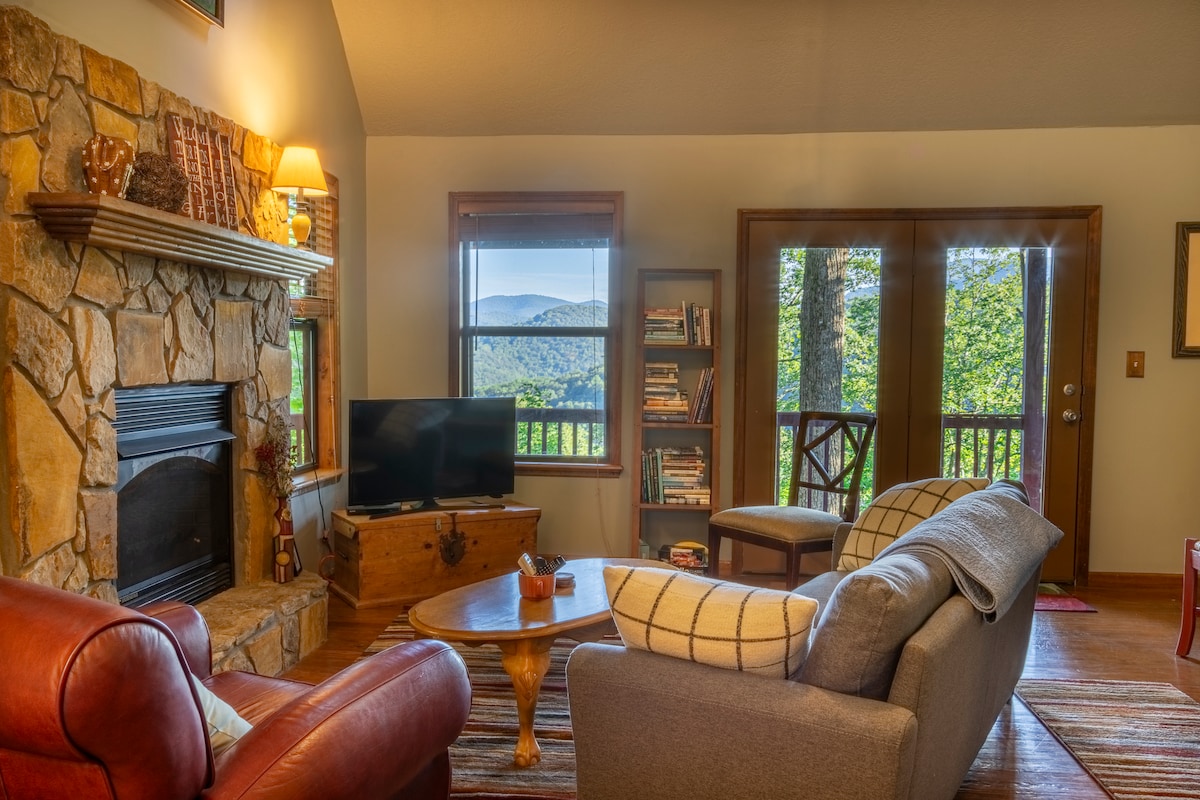 山側にあるプライベートな環境で、年間を通して素晴らしい山の景色を眺められるキャビン。2つの寝室には、薪を燃やす暖炉と2つのベッドを備えた広いロフトエリアを備えた素晴らしいオープンフロアプランがあります。キャビンには、隣接するオープンデッキを備えた大きなスクリーンポーチがあり、ホットタブでリラックスしながら素晴らしい景色を楽しむことができます。近くではハイキング、チュービング、釣り、ノットリー湖、チャタゲ湖、ヘレンやブルーリッジ周辺の散策も楽しめます。楽しめることと景色は無限大です。UCSTRライセンス番号028724