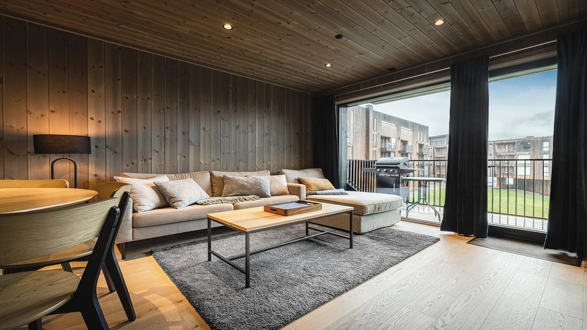Luxury and exquisite details adorn the open interior, boasting a remarkable 6-meter ceiling height. It doesn't get any better for a premium experience! The apartment offers true ski-in, ski-out access with a tow rope right outside the door, and easy access to cross-country ski trails. You are in immediate proximity to Fyri Resort, shops, and other activities. You won’t find a better location.