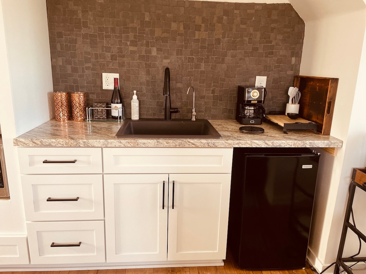 Designed with couples in mind, where relaxation and entertainment await! You'll enjoy the serenity of a small-town country getaway. Features: •Hot Tub •Arcade •Popcorn Movie Bar •Board Games •Claw Tub •King bed •Workspace with vanity. •Twin bunk bed •Murphy Bed for 5th guest •Fully equipped kitchen •Outdoor patio with seating for two and completely private hot tub. •Wi-Fi and smart TV •Washer/dryer Ideal for: • Couples seeking a romantic getaway • Small families looking for a relaxing vacation