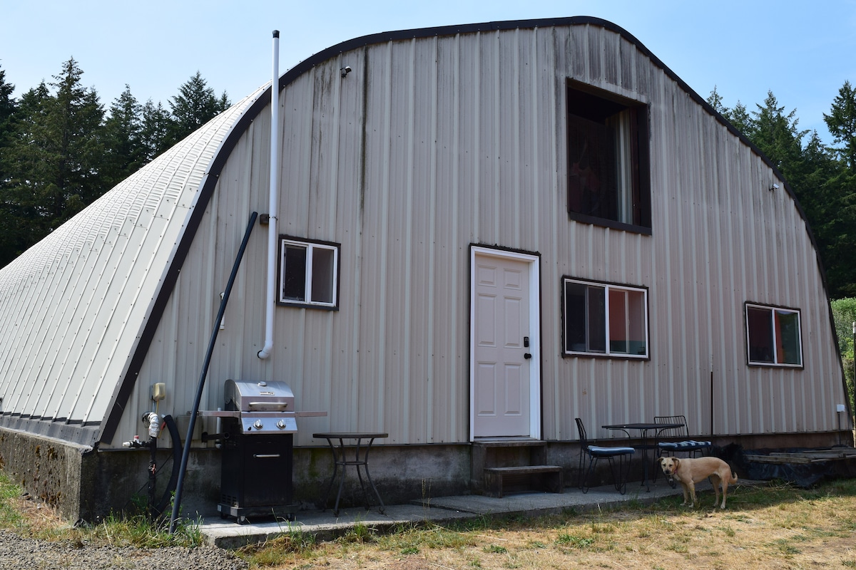 Our farmhouse is in a quiet rural setting. Public transportation is not available. Uber and Lyft service the area. Wineries, the city of Forest Grove and Pacific University are with in a few minutes drive. It is 50 minutes to the beach and 30 minutes to Portland. The studio is located in the basement of our home and has a private entrance. The accommodations include a queen bed, a twin hide-a-bed, sitting area, studio kitchen and full bath.