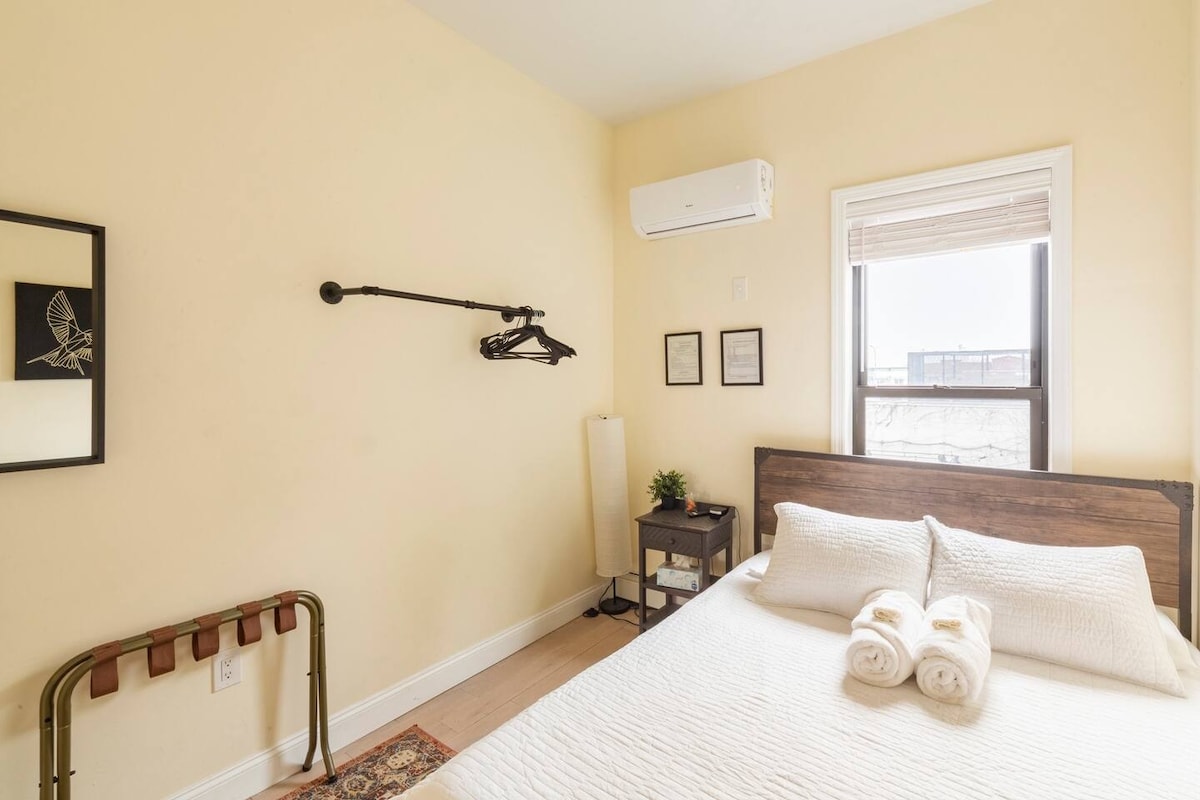 Welcome to your lovely retreat in Brooklyn! - Sparkling clean 1.5 bedroom apartment with a comfy queen bed and semi-private full bed. - Fastest Internet for work or streaming. - Fully equipped kitchen, cozy living room, and private bathroom. - Enjoy easy access to Brooklyn neighborhoods and a short train ride to Manhattan. - Close to parks, restaurants, and public transport options. - Automated check-in for your convenience with 100% privacy.