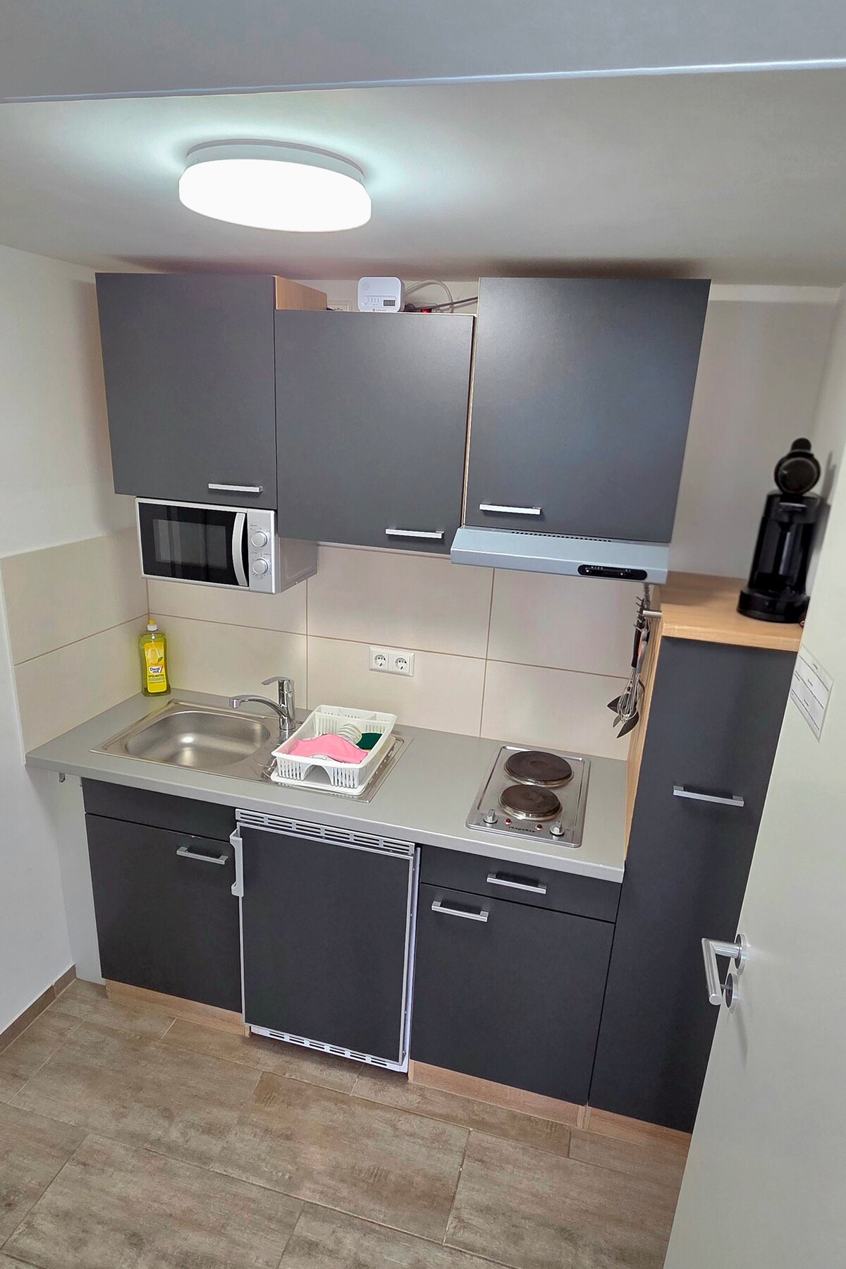 エッテンハイム・イム・オスターバッハ、とても静かな場所 1.8 x 2.0のボックススプリングベッド、椅子2脚、クローゼットを備えた寝室1部屋。 1.8 x 2.0のボックススプリングベッドと1.4 x 2.0のソファベッド、リビングルームテーブル、デスク、43インチテレビを備えたベッドルーム/リビングルーム 食器洗い機、電子レンジ、ダイニングテーブル、バーカウンター用スツール6脚を備えた設備の整ったキッチン1部屋 バスタブとガラス製シャワースクリーン付きのバスルーム クローゼットと大きな鏡のある廊下 電気自動車用充電ステーション(リクエストに応じて)充電ケーブルタイプ2