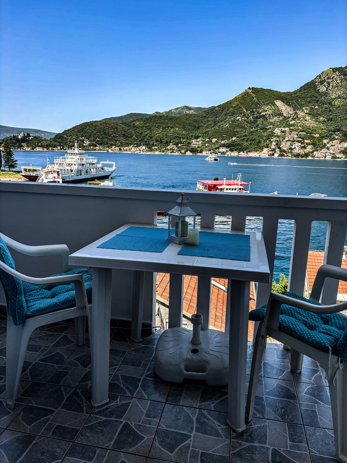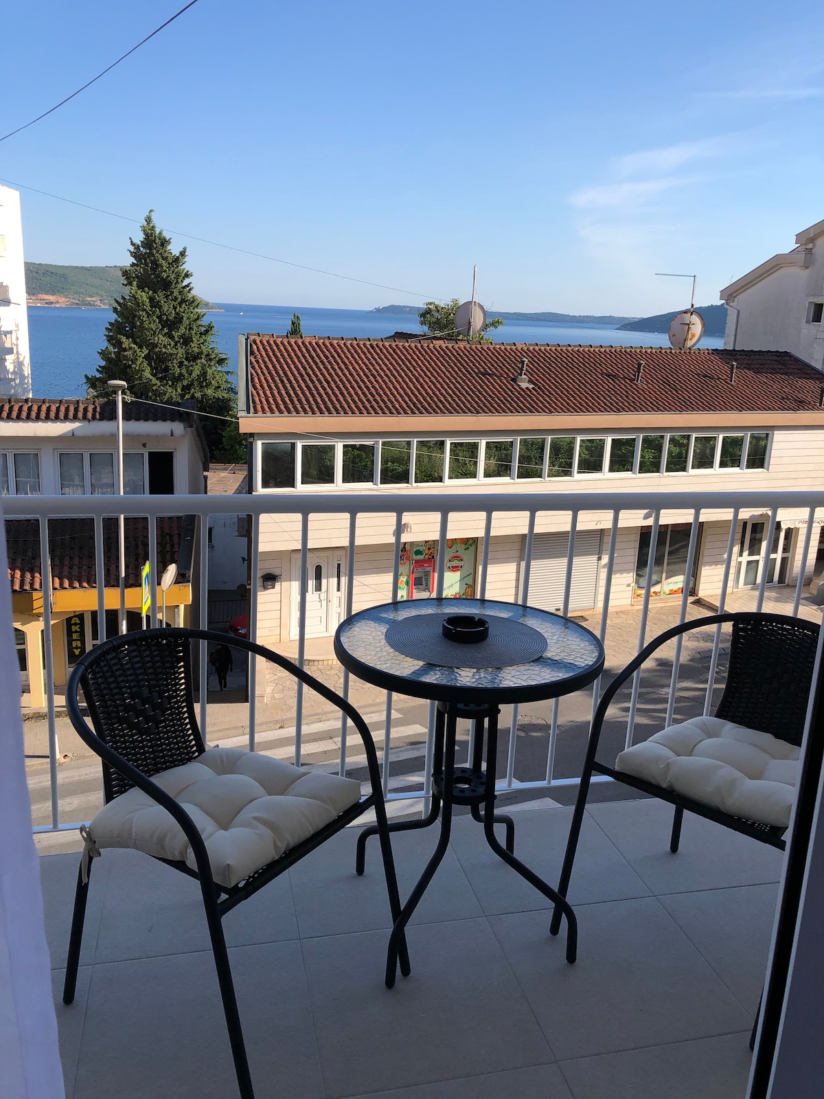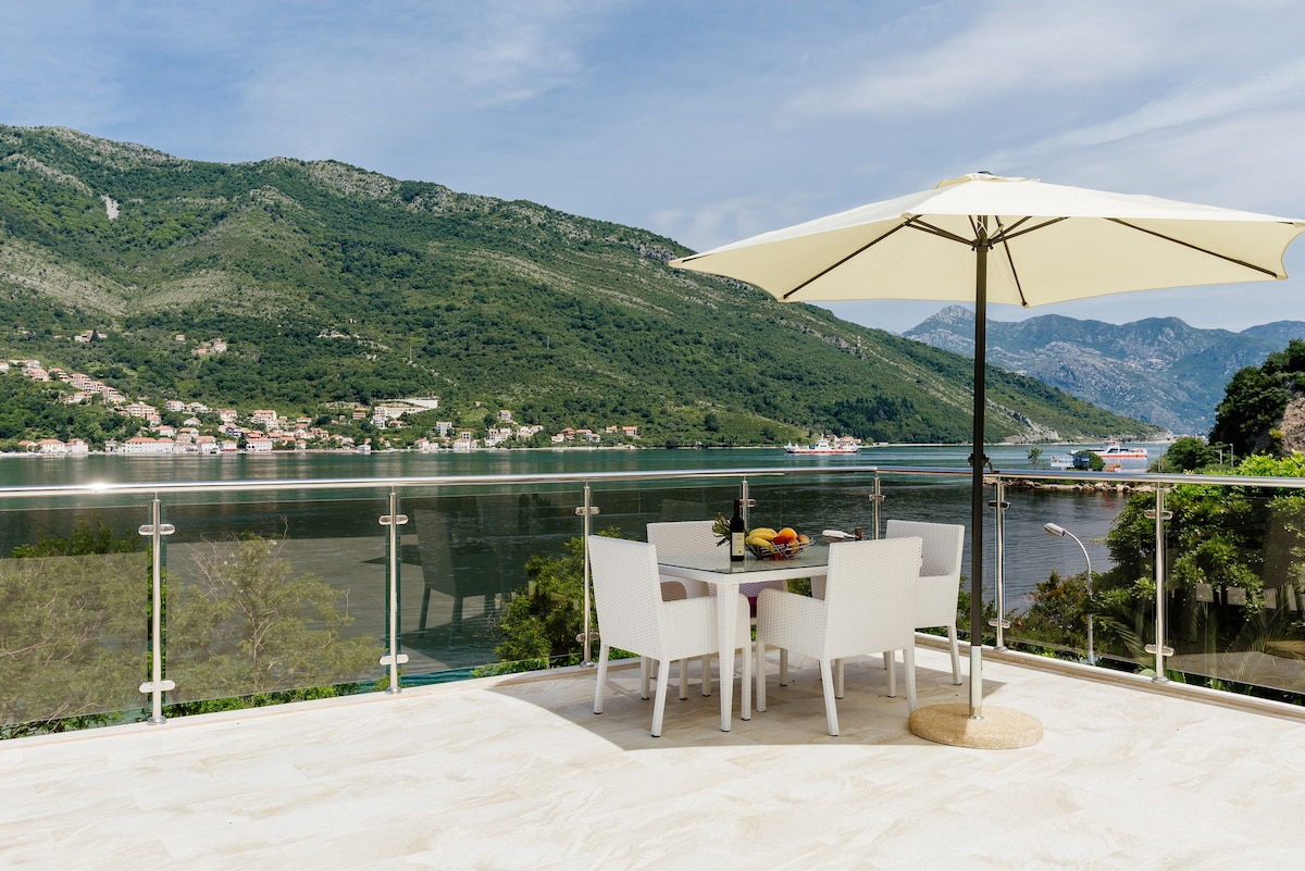 バルコニーからの海の景色を望む上品に装飾されたグリーンスタジオのアパートです。エアコン、液晶テレビ、Wi - Fi、Wi - Fi、バーベキュー、ヘアドライヤー、ビーチタオルが完備されています。モンテネグロでのリラックスして楽しい休暇に必要なものがすべて揃っています。 海から最初に行けるデラックスグリーンスタジオアパートメントには、140平方メートルの大きなサンルーフテラスがあり、ティヴァット湾の壮大な景色を眺めることができます。 ビーチはグリーンアパートから徒歩圏内、通りの反対側にあります!