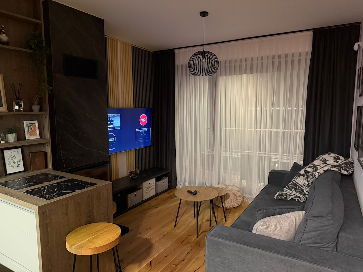 快適で豪華な家具付きのアパートには、広々としたリビングルーム、設備の整ったオープンプランのキッチン、ダイニングテーブル、ソファベッド、素晴らしいベッドを備えた寝室、シャワーとトイレ付きのバスルームがあります。私たちのアパートには、屋外用座席とラウンジチェアを備えたとても広々とした専用テラス/バルコニー(19平方メートル)があり、夏と冬の両方で息をのむような山とビエラシュニツァの景色を楽しむことができます。