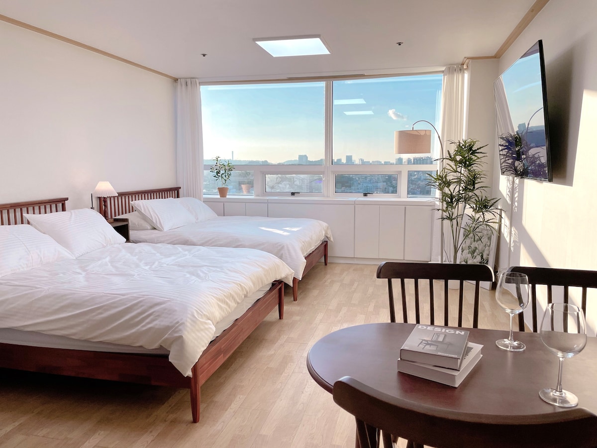 A newly built Residence within 3 minutes of 2 subway stations *Reception & Luggage Storage & Guest Lounge: B1F (English & Chinese-speaking staff available, breakfast service (paid)) *non-smoking property. fine: 150,000 won. *A Coffee machine & welcome coffee capsule, bidet ,drinking water purifier *Everything you need, just like home. *2 guests will use one bed. If you prefer separate beds, please request in advance. (paid) *For 3 or more people, a sofa bed will be set up as a bed.