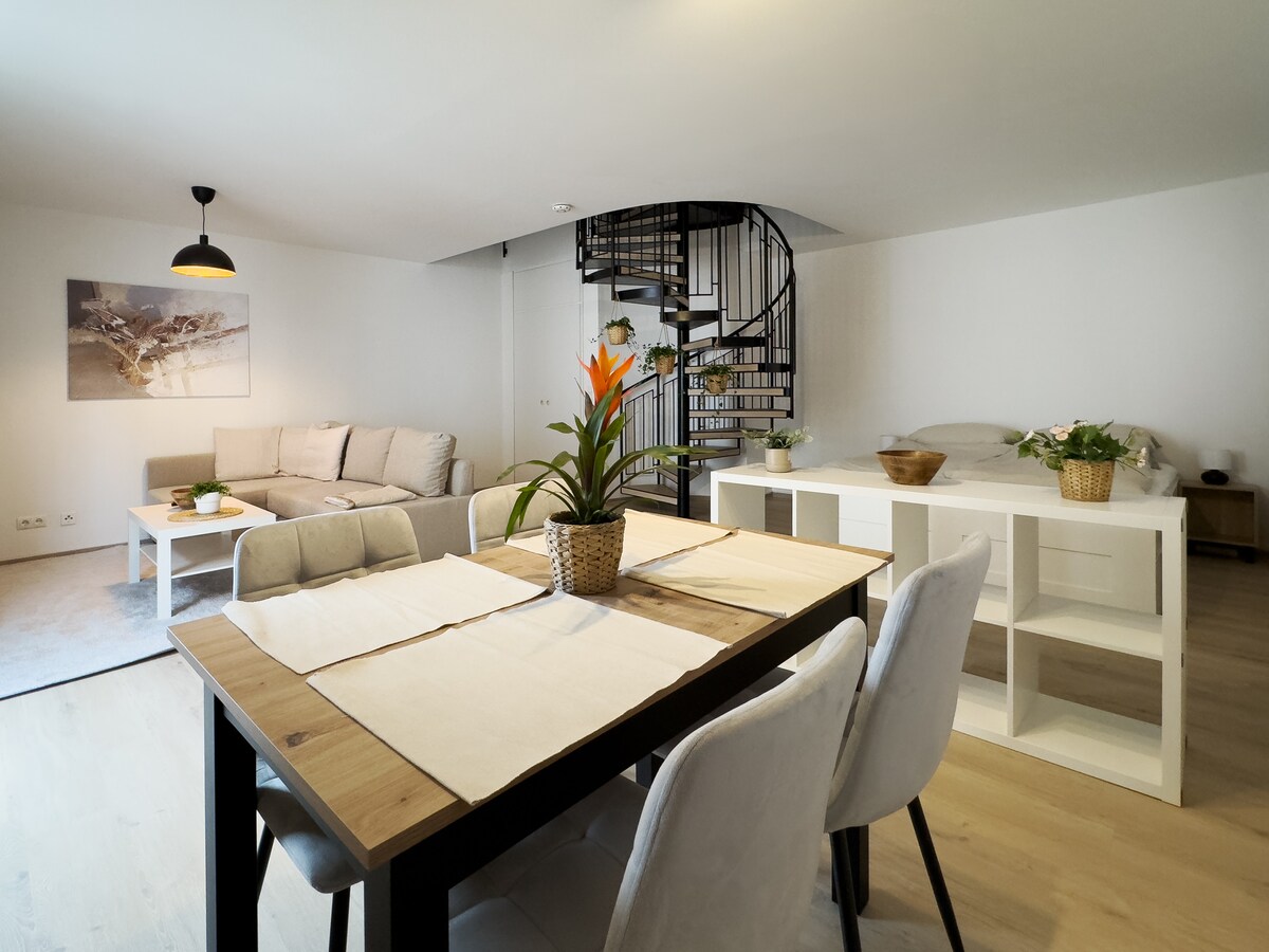 駐車場付きの中心部にあるモダンなアパートメント(2名用)