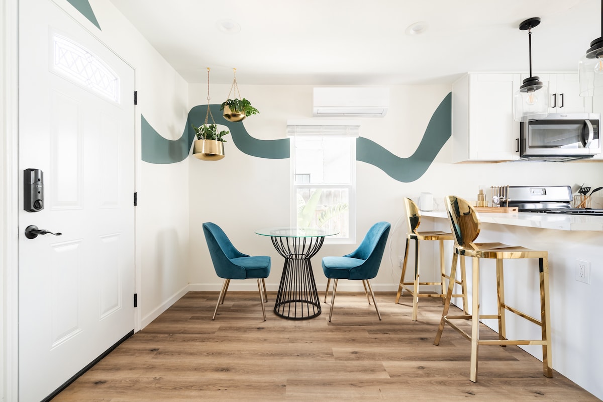 明るい•歩いて回れる•魅力的な2ベッドルームのクラフツマン様式の隠れ家は、サンディエゴのユニバーシティハイツ地区にあり、ヒルクレストとノースパークの間という絶好のロケーションです。 天窓と大きな窓が家の中を自然光で満たし、考え抜かれたインテリアが快適さとスタイルを提供します。 屋外席のある専用のフェンス付き庭をお楽しみください。徒歩2ブロックのレストラン、カフェ、食料品店まで歩いて行けます。 サンディエゴを探索するカップル、少人数グループ、出張旅行者に最適です。