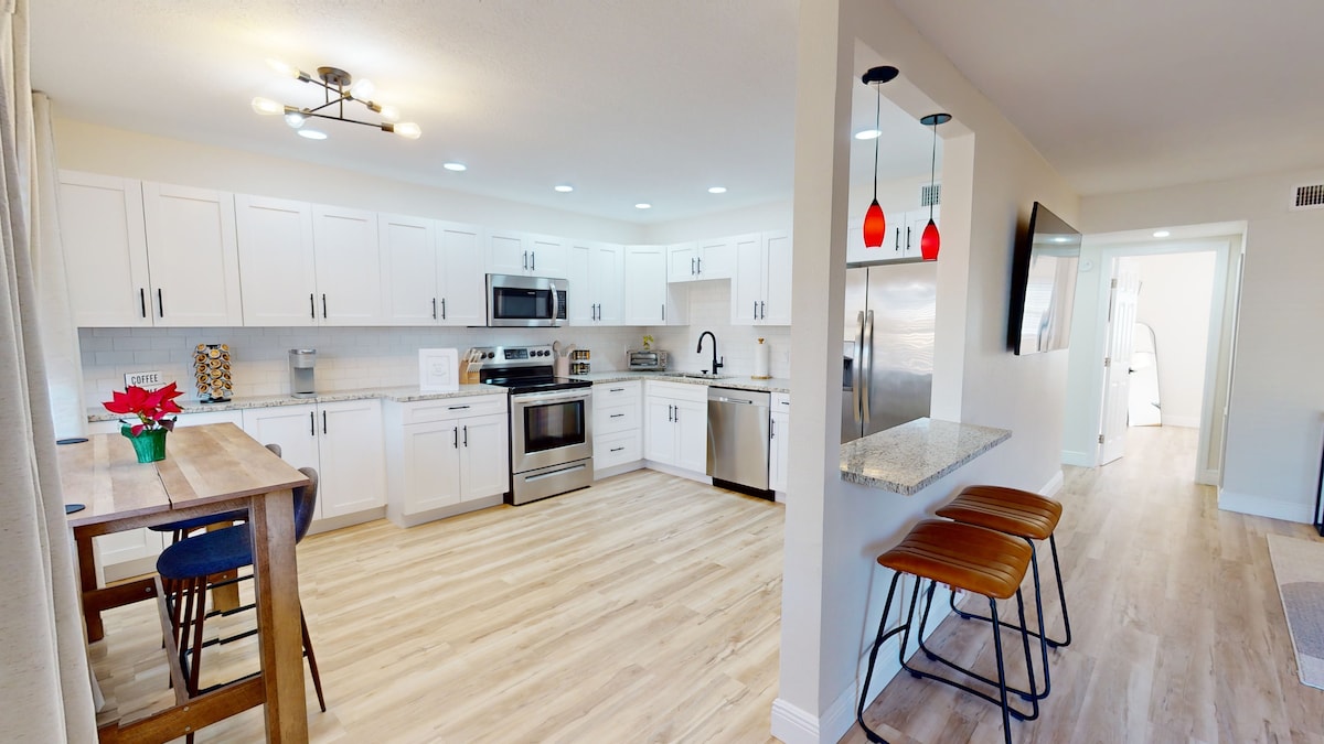 私の小さな楽園へようこそ!この日当たりの良い2ベッドルームのリトリートは、トレンディなセミノールハイツの中心部にある魅力的なフロリダのタウンハウスの最上階にあります。賑やかなカフェ、クールなバー、地元の醸造所、食通のホットスポットまで、徒歩または自転車でわずかの距離にあります。タンパで最も美味しい宝物があなたの周りにあります!家族連れでも友達連れでも、味、センス、そしていい雰囲気を満喫できる、楽しい滞在になること間違いなしです。