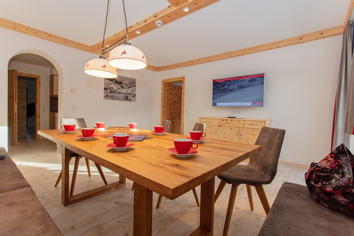居心地の良い、モダンで素朴なアパートメントは、完璧に整備されたハイキングコースや大規模なクロスカントリースキーネットワークのすぐ近くに位置しています。 スキー/ハイキングバス停から、ザールバッハ・ヒンターグレンム・レオガング・フィーバーブルンのスキー場まで徒歩でわずか数分です。駅は家から徒歩約10分の場所にあります。 コースと村のコースは照明がついています。 家にはスキーや自転車の駐車場とテラスがあります。