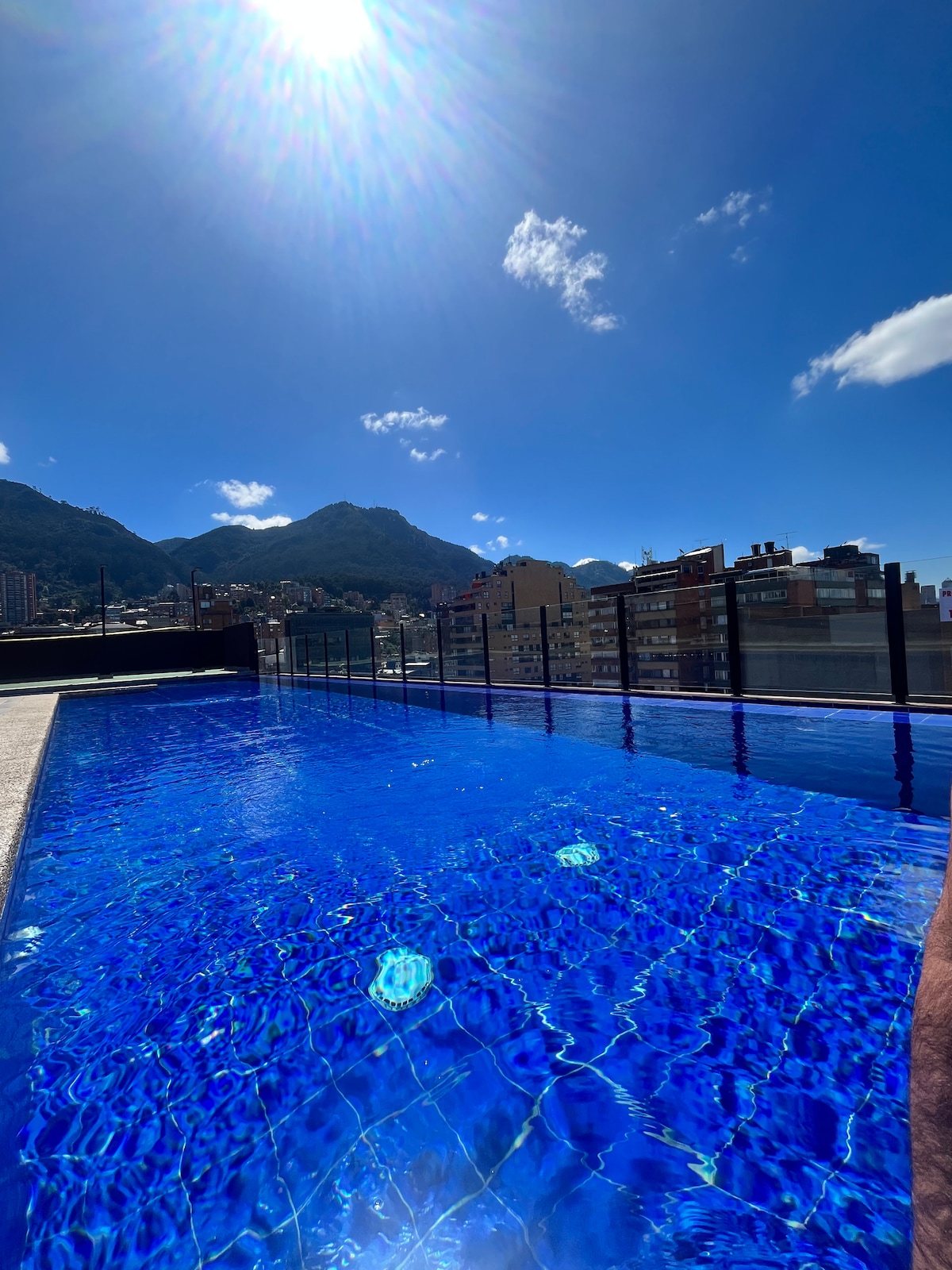 With an amazing view over Bogota, this cozy and comfortable apartament is the best place to enjoy the city. Hi speed internert. Close to restaurants, cafes, supermarkets . Very centric location to move arround Bogotá, with easy public transport in the front of the building entrance. Amazing rooftop with 360 view and bbq zone, gym, meeting rooms, bike parking and private parking. security 24hours