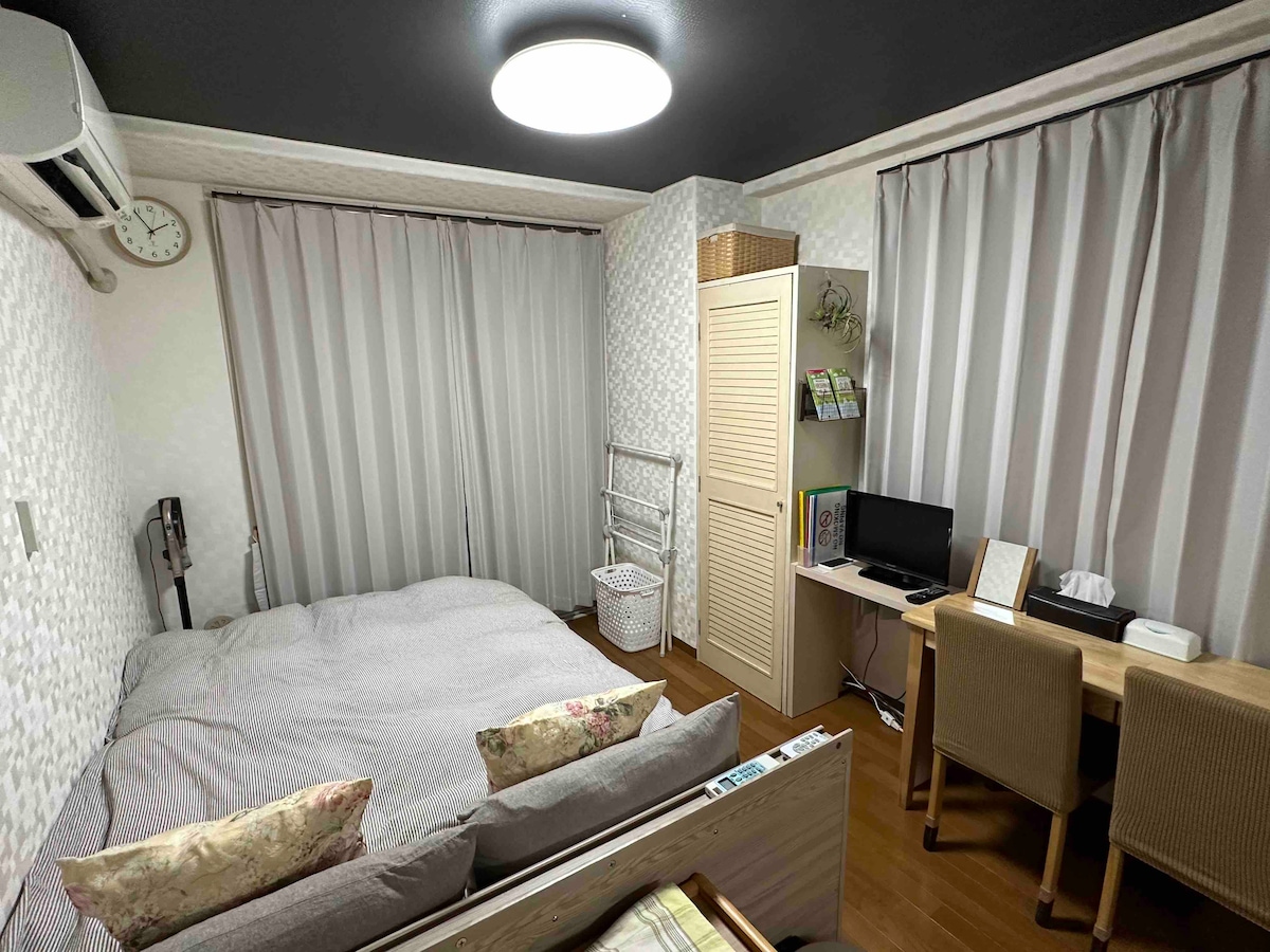 This apartment is second floor and no elevator. But clean and lovely space. Most amenities are provided. 850meters distance from the North exit Hiroshima Station, 900meters from the South exit to our location. There is a convenient small super market about in 2minutes TV is internet TV . AmazonPrimes is signed by BlueHouse ☆The toilet is not a bidet seat ☆After you turn off the lights at night, you can enjoy the view of the luminous walls for a while. ユニットバスで温水トイレではありません。夜は光を蓄える程、蓄光の壁を暫く楽しめます