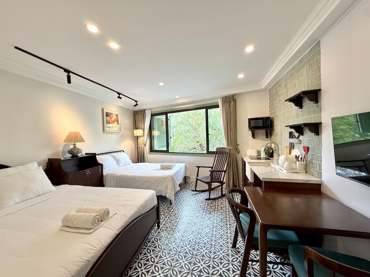 Căn hộ phong cách Đông Dương nằm trong khu phố quân đội yên tĩnh, an ninh cao nhưng chỉ cách Phố Cổ, phố đi bộ Hồ Gươm và phố đường tàu 500m. Từ đây, bạn dễ dàng khám phá các điểm du lịch nổi tiếng, quán cà phê và ẩm thực Hà Nội. Không gian ấm cúng, tiện nghi đầy đủ, phù hợp cho du khách muốn trải nghiệm Hà Nội sôi động ban ngày nhưng vẫn có nơi nghỉ ngơi riêng tư và an tâm khi trở về. Căn hô đầy đủ tiện nghi, dịch vụ dọn dẹp (2 lần 1 tuần), phòng gym, máy giặt sấy và hầm để xe máy miễn phí