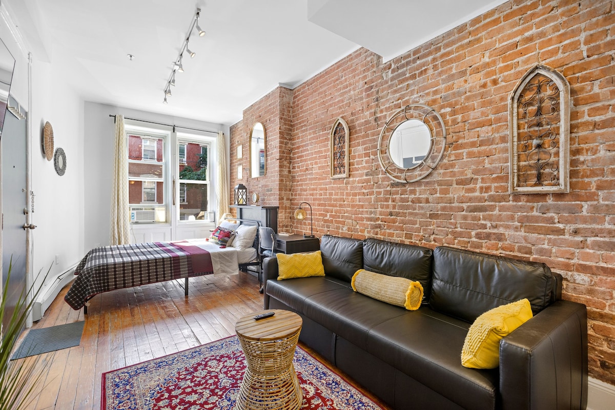 This charming and carefully restored 1901 brick row house apartment is perfectly located on a tree-lined street in downtown Hoboken. Featuring your own private keyless entry, spacious layout with designer touches, fully equipped kitchen, private patio, and modern amenities such Wi-Fi, Alexa, and smart TV. If you are looking for a short getaway and appreciate upscale style, this is the perfect place to relax and refresh. For extended stays, settle in & experience your new home away from home.