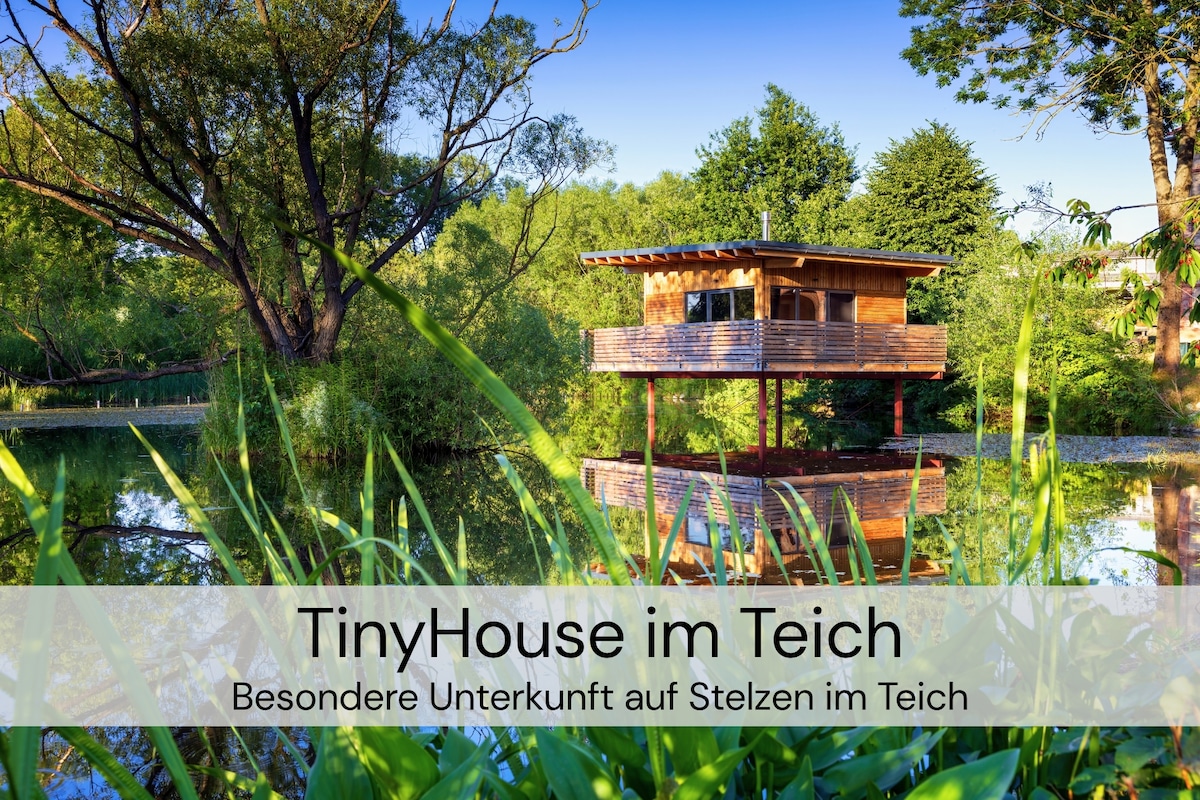 Detached tiny house on steel supports in the middle of the horse pond directly in front of the listed Hexenburg castle. Three-sided terrace with barbecue, surrounded by paddocks and the Hexenburg riding facility in the immediate vicinity. The house offers all the necessary amenities such as a dishwasher, refrigerator with freezer compartment, and of course its own bathroom with shower and toilet.