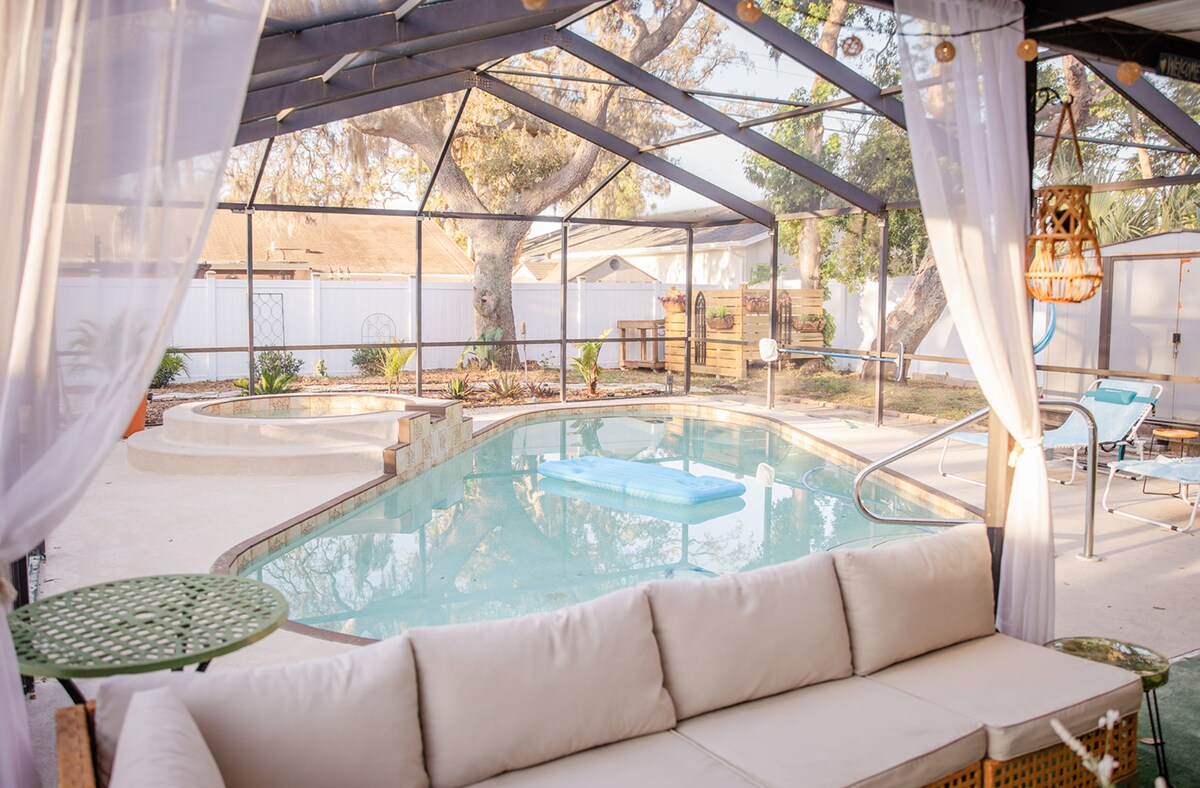 🌴温水プライベートプールのオアシス(11月~3月)ターポンスプリングスまで5マイル。充電するのに最適です。🏡 バーベキューや屋外でのんびり過ごせる専用パティオ。静かなエリアでぐっすり眠れます。 家族連れや友人との旅行に最適です。高速Wi-Fiと仕事用スペース、設備の整ったキッチン、🔑 24時間365日セルフチェックイン、🚗敷地内駐車場があります。 ダニーデン、クリアウォーター、タンパ、ビーチへのアクセスが簡単です(所要時間は交通状況によって異なります)。✨ 注:プールの温水は11月から3月までご利用いただけます(天候によっては利用できない場合があります)。 ⏳直前プロモーションが有効です。予約して日付を確保しましょう!