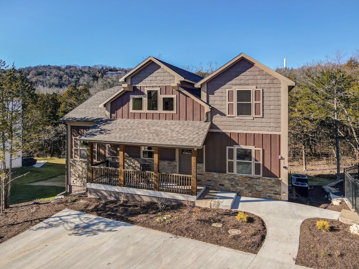 オザークの中心部でリラックスしましょう。 テイニーコモ湖とテーブルロック湖まで数分です。 森の中にありながら、ブランソンのあらゆるスポットに近いです! シルバーダラーシティとブランソンランディングまで車ですぐです。 私たちのロッジは、休暇にぴったりの場所です。 快適なキングサイズベッド2台とクイーンサイズのソファスリーパーがあり、お友達やご家族とのリラックスに最適な場所です。 キッチンには、1泊または1週間に必要な鍋、フライパン、食器がすべて揃っています。