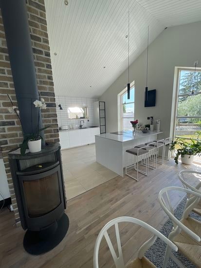 明るく居心地の良い家へようこそ。母屋の中には、下の階にトイレがあり、リビングルームには大きなコーナーソファ、プロジェクター、薪ストーブがあります。 2階:レインシャワー、バスタブ、ダブルシンク付きバスルーム。寝室は2部屋あり、1部屋には160x200cmのベッドが、もう1部屋には引き出し式ソファベッドがあり、仕事スペースがあります。 囲まれた庭には最高の静かなWFHスペースがあります。庭の一番下には、メインハウスとは別の3つ目の寝室があります。 海の近くにあり、市内中心部からバスで20分です。