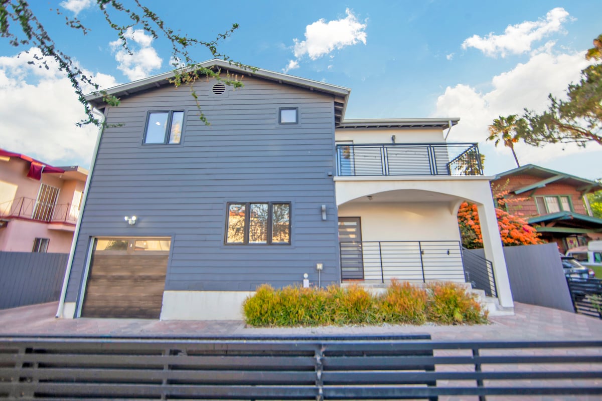 ミッドセンチュリーモダンの2ベッド/2バスルームのスティルトハウスで、サンセットストリップの上の素晴らしい景色を眺めることができます(ハリウッド+フェアファックスから2ブロック上)。 アクションからわずか数ブロックですが、とてもプライベートで静かです。 屋根から基礎まで、暖房/エアコンシステム、1 Giga/秒Wi-Fi、11のスピーカーでのイン&アウトの配線、映写機+ 2台の4kテレビ(無料Netflix、HBOMax、AppleTV + )、レベル2の電気充電器付き2台分の駐車場を最近改装しました。 注:パーティーや遅くて騒がしい夜は禁止です。 内部= 1015平方フィート。 デッキ= 300平方フィート。