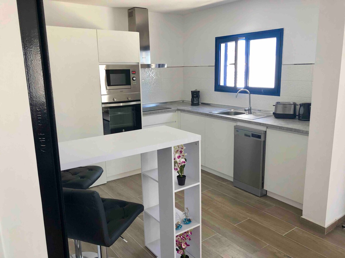 ランサローテ島のアハチェス自然公園の隣にある、海に面した素晴らしいエコロジカルハウス。2つのテラス、屋外家具、ハンモック、ダイニングルームがあります。ダブルルーム、ソファ、フルバスルーム、トイレがあります。6000m2の私有地があります。とても静かな漁村にあります。