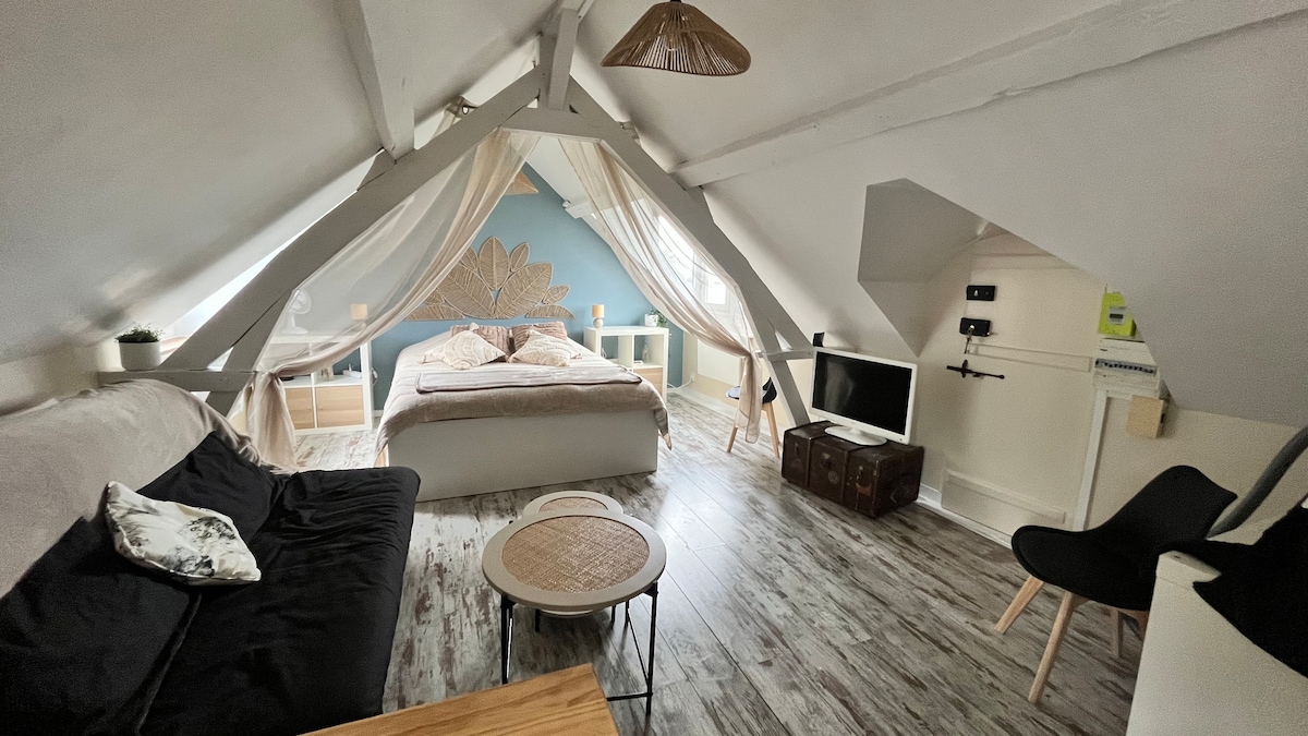 2名様用の33平方メートルのコクーンは、明るく静かで設備が整っており、小さなガレージが付いているので、オンフルールでのご滞在を成功させることができます。 港、ショップ、レストラン、美術館、市場まで徒歩わずか5分!ダブルベッド、居心地の良いテレビラウンジ、ダイニングエリア、設備の整ったキッチン、シャワー付きのきれいなバスルーム。全面改装済みで、インターネットとリネンが含まれています!