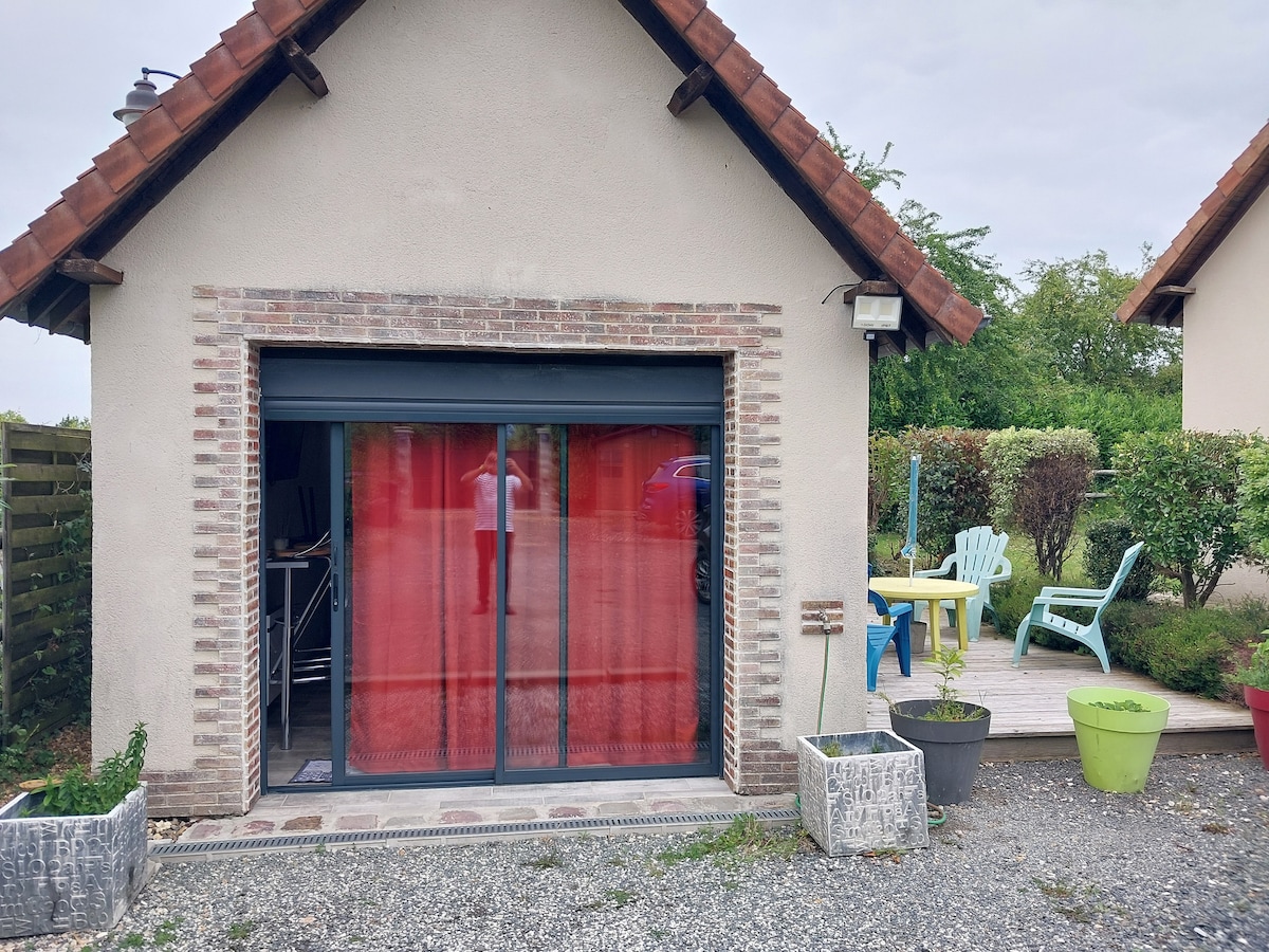 Dans propriété (état neuf) Gîte (non classé), avec terrasse. 2 personnes (1 lit 2 personnes à l'etage + couchage canapé convertible RDC). Proche Honfleur (5 min en voiture), Plage (5 min en voiture), Deauville (20min), Pont de Normandie (5 min). Place de parking (portail avec digicode) Entièrement équipé sauf lave linge, accès étage par escalier. WIFI gratuit (internet haut débit ) Kitchenette, 2xTV, douche italienne. Serviettes et draps : inclus. Non fumeur / Animaux non admis.