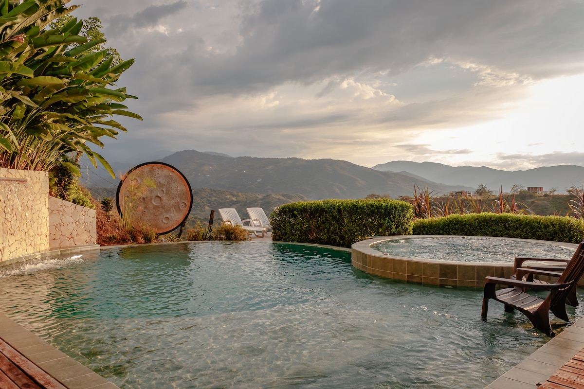 Iraka Villa de Verano. Exclusiva cabina de roble rodeada de naturaleza y vistas increíbles. Ubicada en un bosque seco tropical donde podrás disfrutar de clima cálido durante todo el año. A solo 1 hora y 15 minutos de Medellín. Minipool privada para refrescarte durante el día y con opción de calefacción para disfrutar de una noche en pareja. Cómoda habitación con A/C y cama king con sábanas 100% algodón. Baño al aire libre donde podrás disfrutar de una relajante ducha con una hermosa vista.