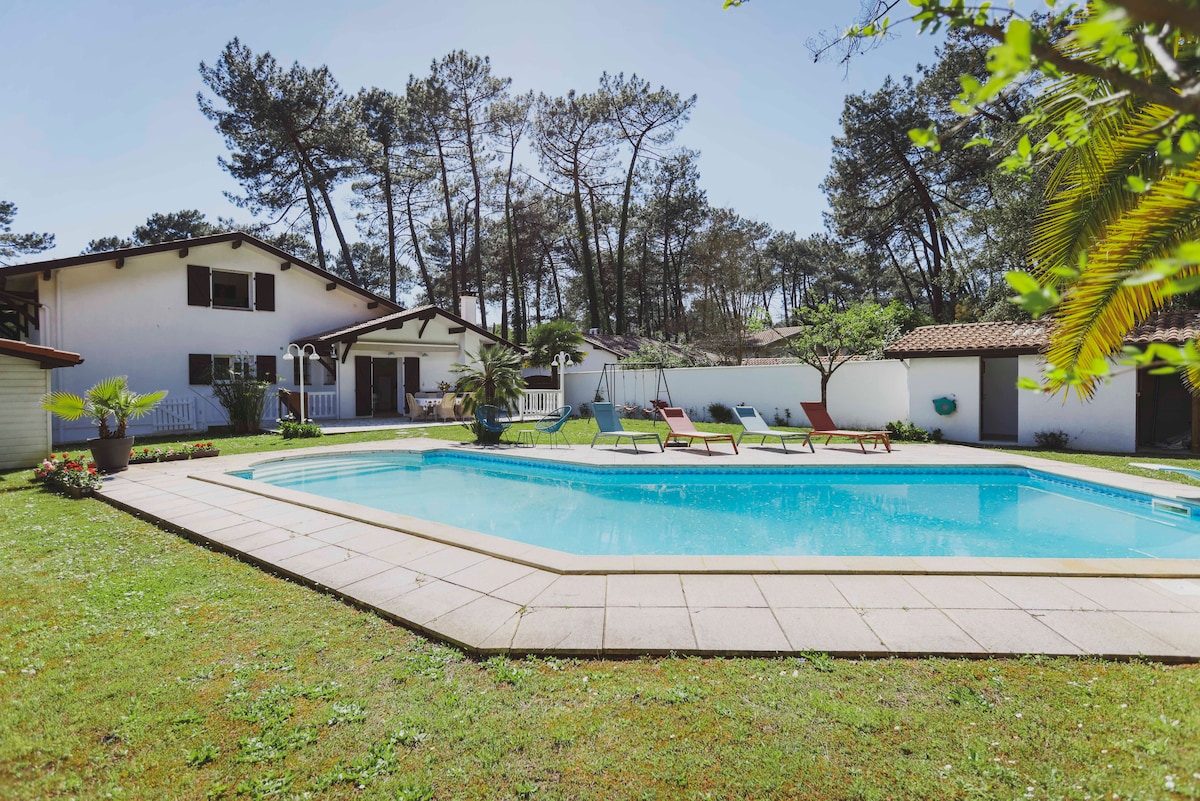 1926年に建築家アンリ・ゴドバルジュによって設計されたこのバスク風・ランド風のファミリーハウスは、静かなエリアに位置し、主要な観光地(海、湖、港、商店、スポーツセンター、バスなど)から徒歩数分です。800平方メートルの敷地に、165平方メートルの居住可能な9つの部屋を備えたこの家は、南向きで、庭、独創的で利用しやすい内装の、10〜12人のための快適で居心地の良い宿泊施設です。