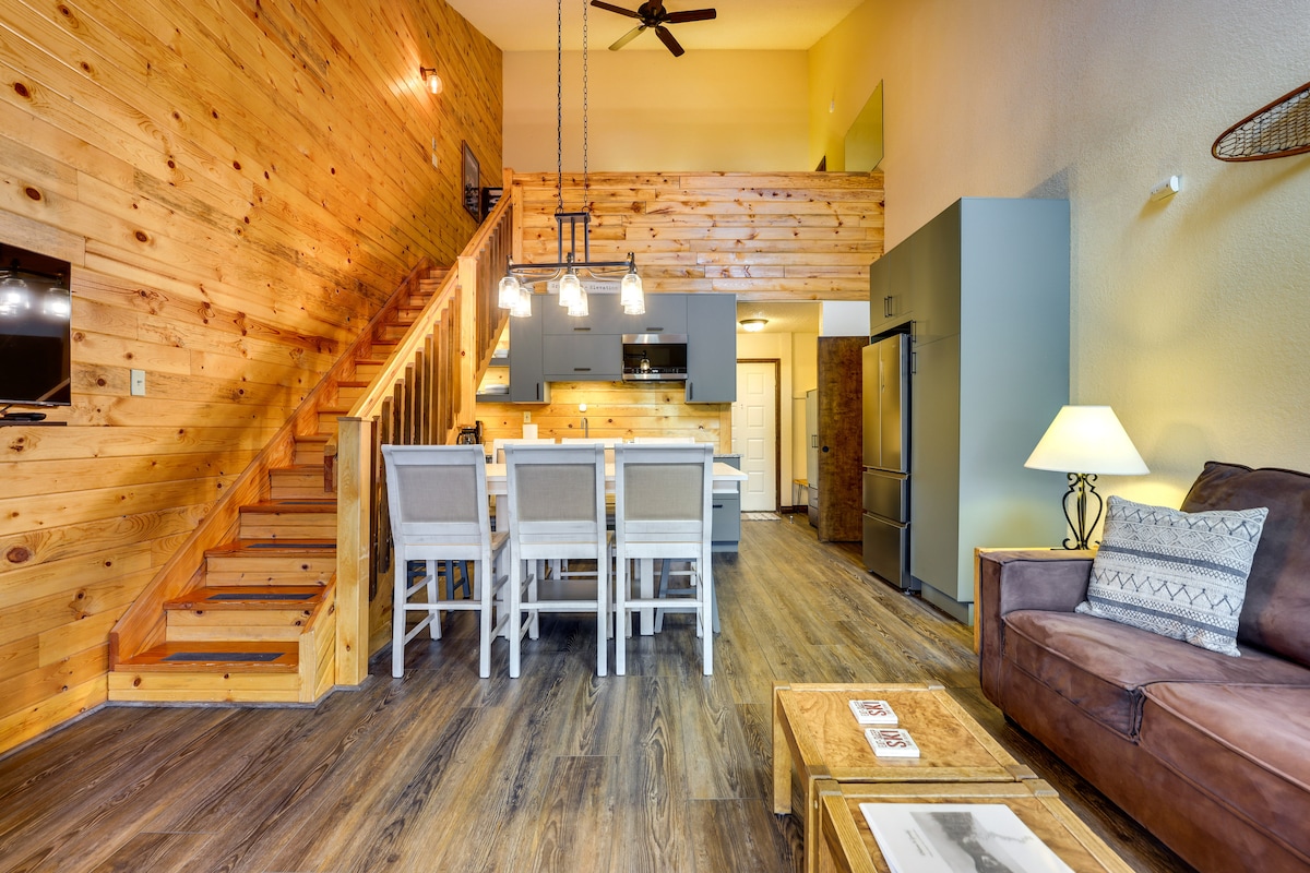 山の中の快適なコンドミニアム | スキー、ハイキング、釣り、ジャグジー、プール