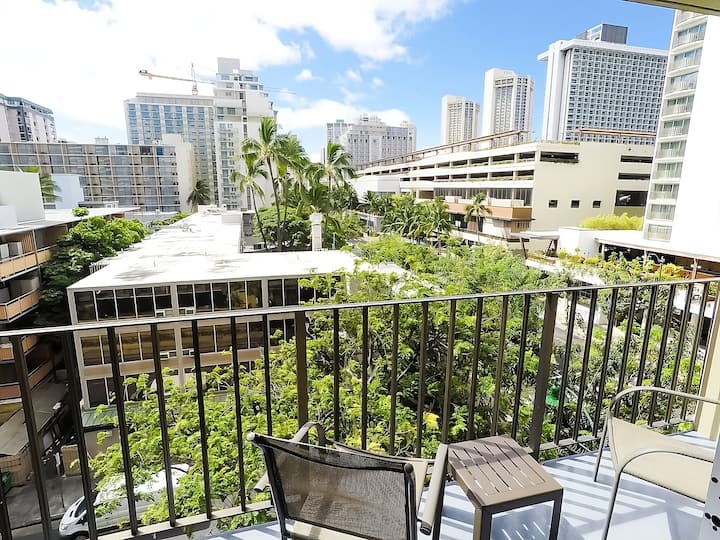 ワイキキビーチの休暇!キッチン、専用バルコニー!
